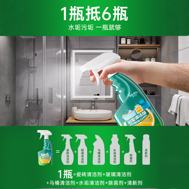 水卫士除菌净味浴室清洁剂卫生间除垢墙面去污玻璃顽固水垢清洗剂