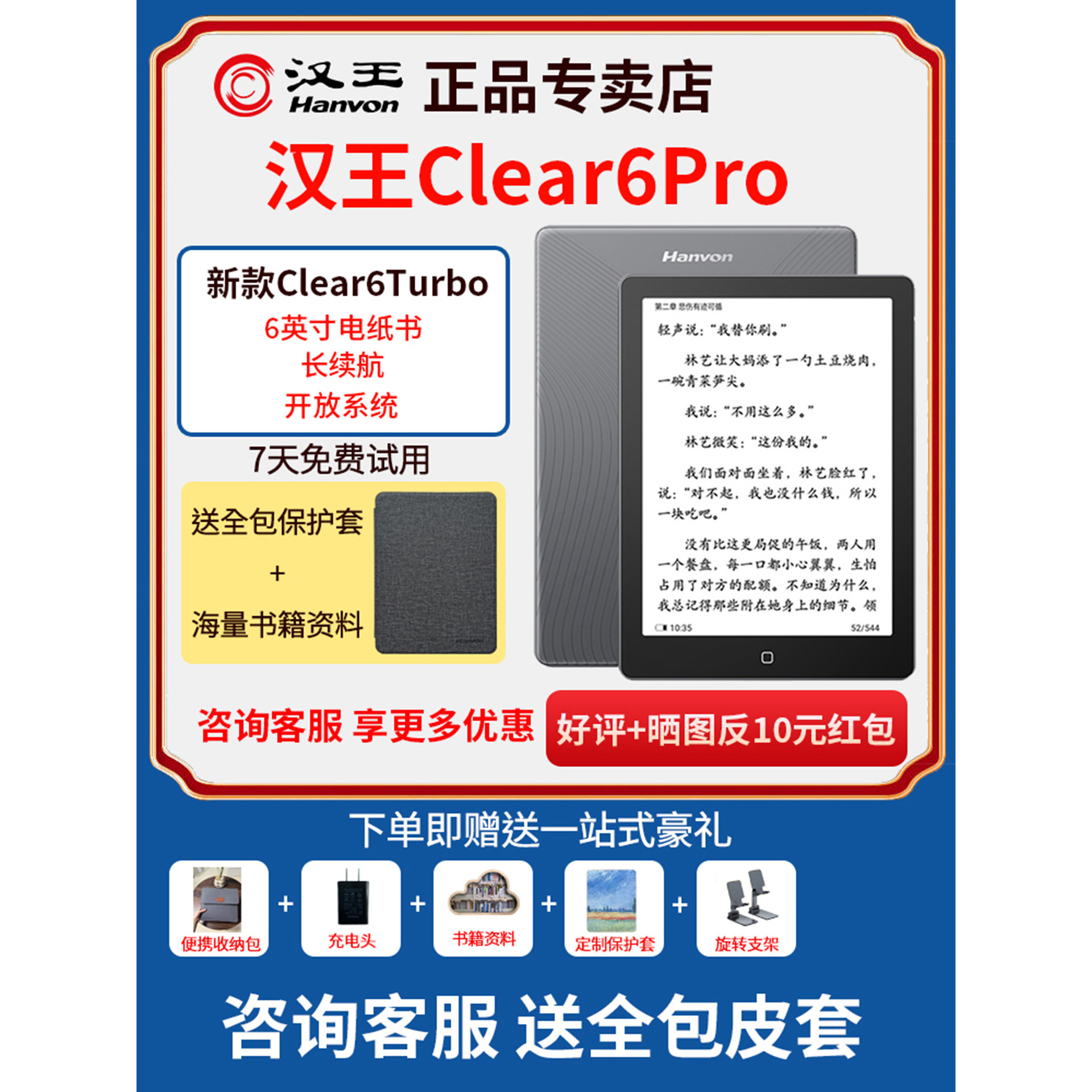 2025新货汉王电纸书clear6pro300ppi6英寸高清电子墨水屏阅读器读书阅览器