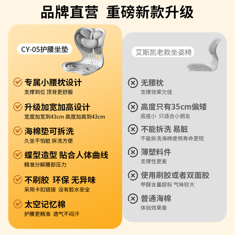 艾斯凯腰坐垫靠背一体椅子垫久坐神器坐姿椅人体工学设计矫正支撑