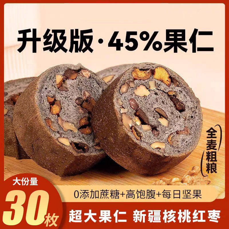 全麦果仁车轮面包代餐无加减脂期坚果吐司早餐糕点好吃抹茶蛋糕
