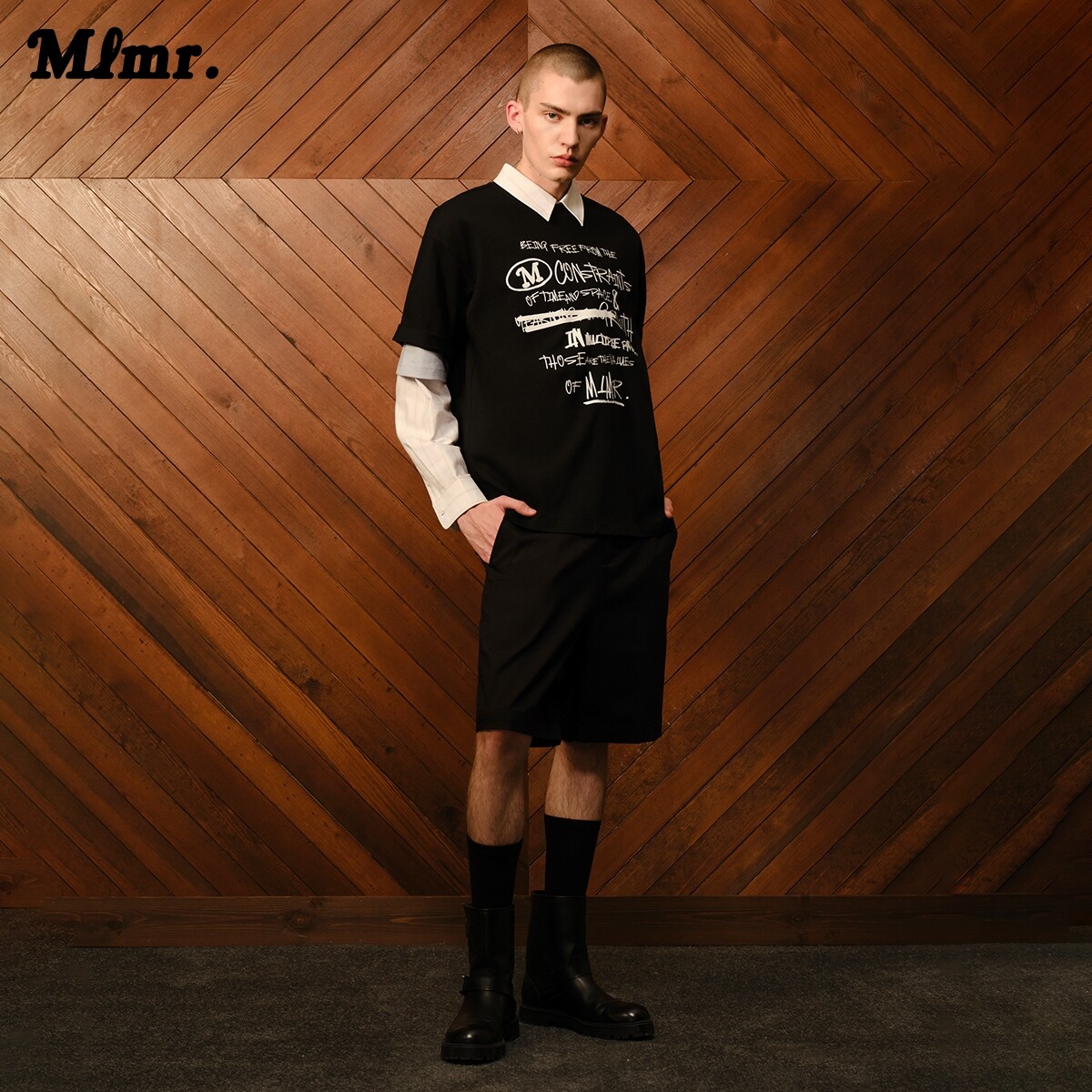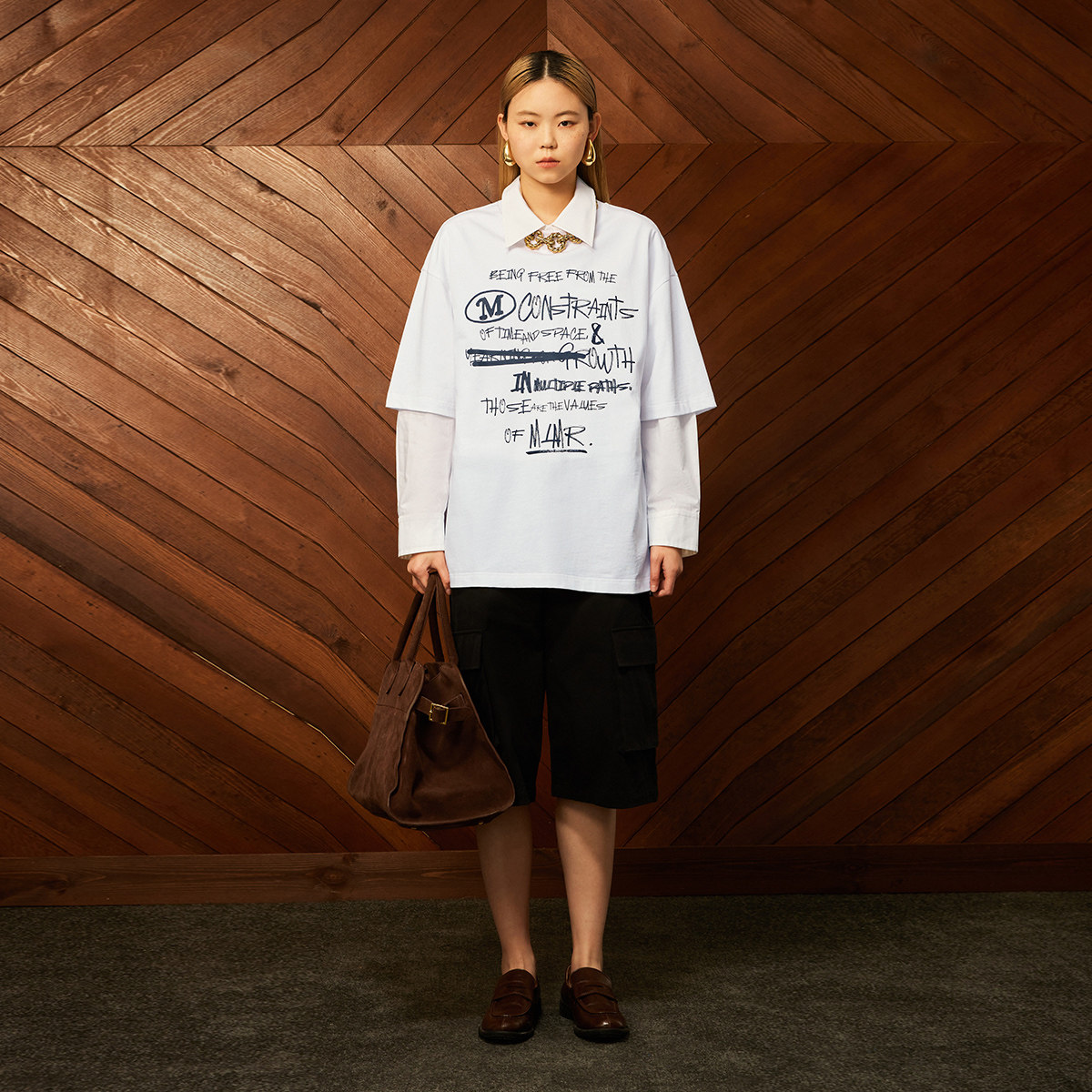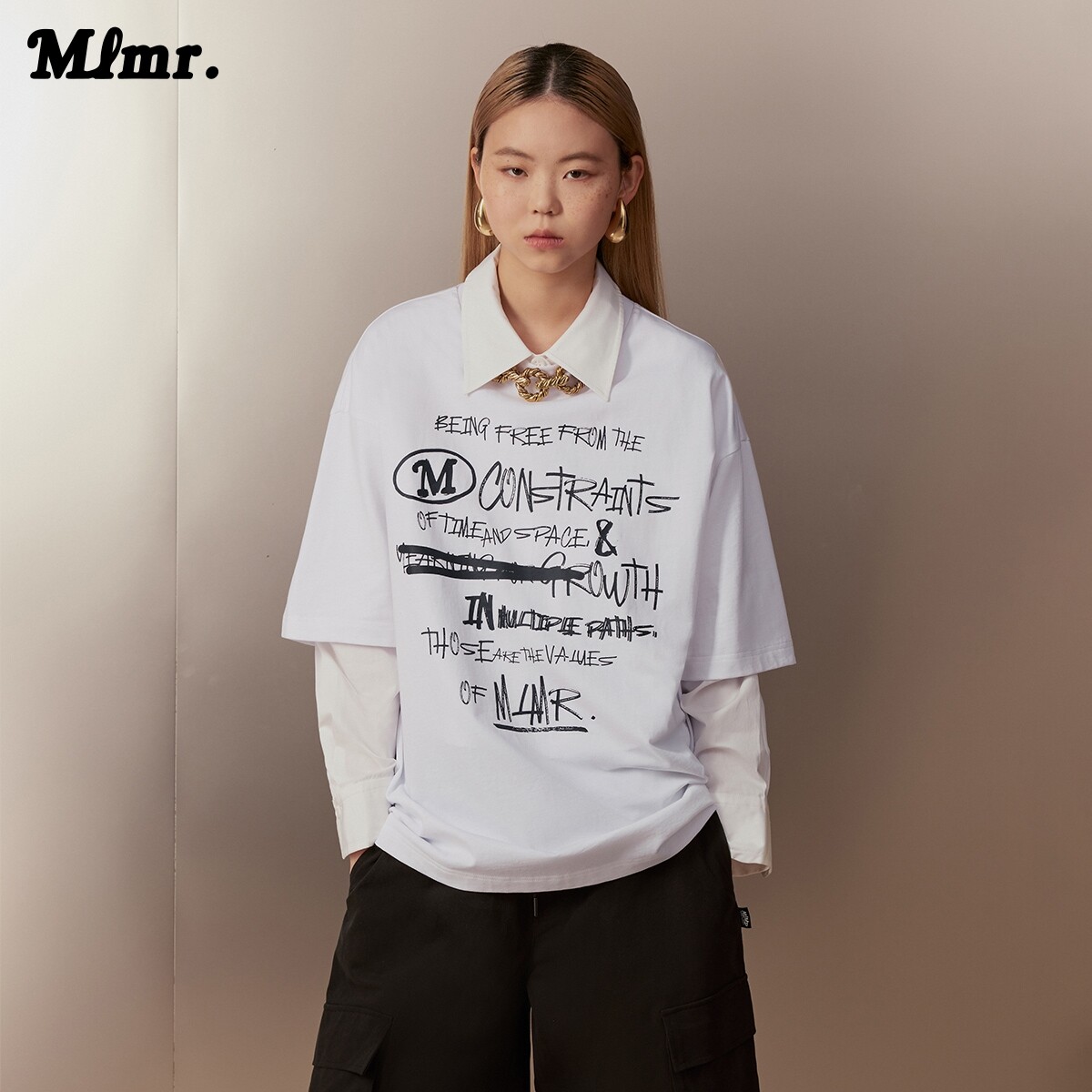 MLMR夏季新款艺术感字母涂鸦舒适纯棉百搭宽松圆领T恤男女
