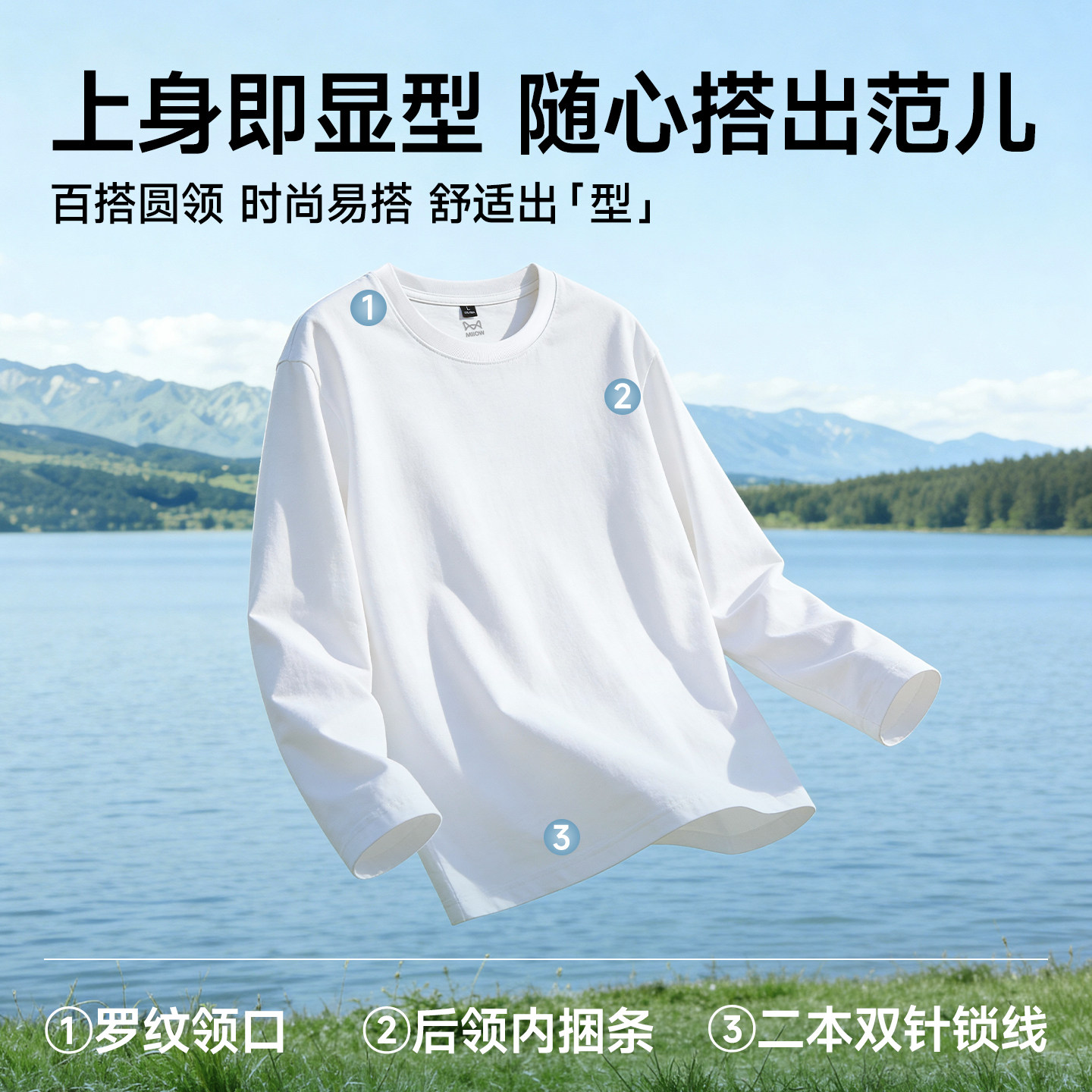 新疆棉400g重磅纯棉长袖t恤秋冬宽松纯白色打底衫内搭加厚男女款