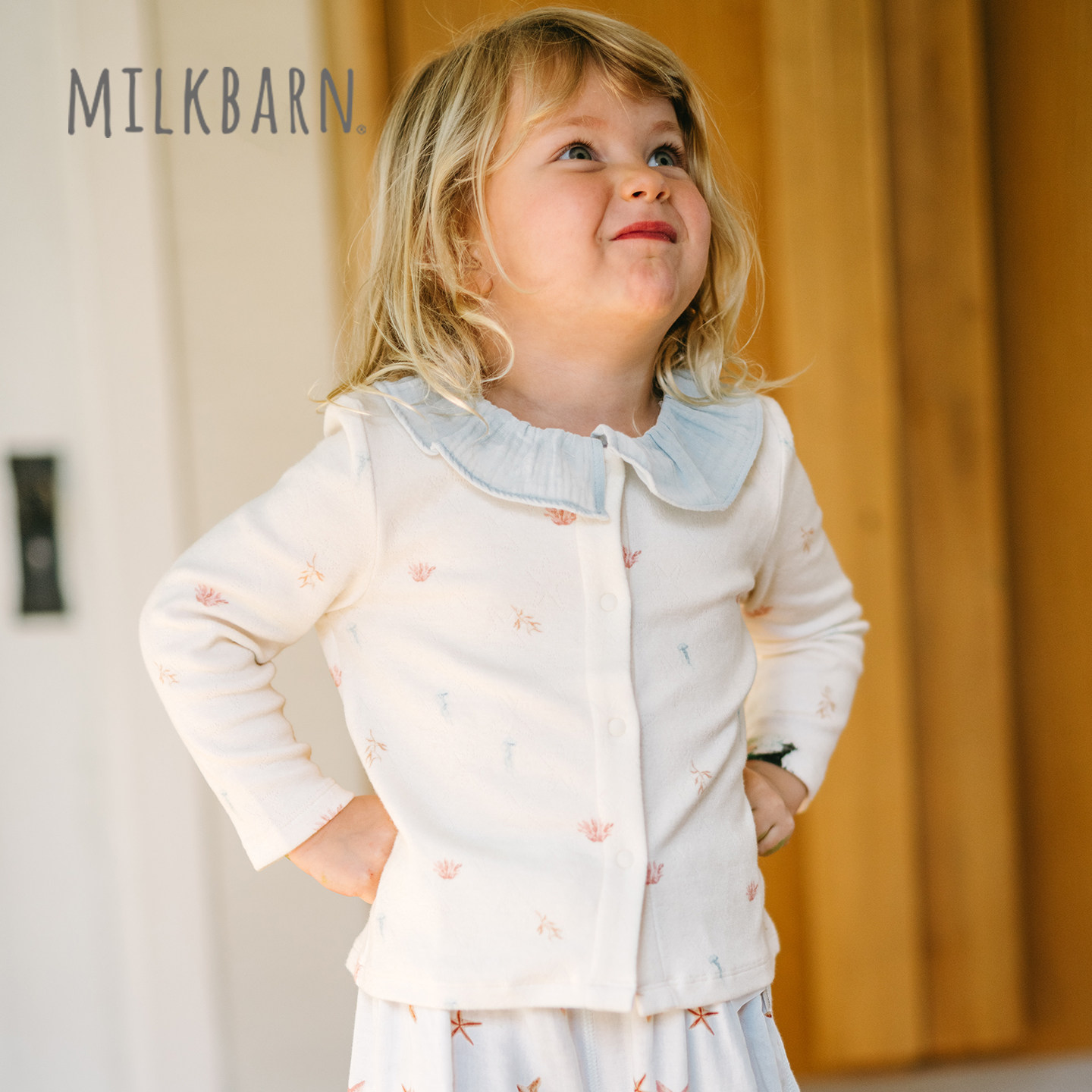 Milkbarn2026春夏新品儿童荷叶边领开衫婴儿宝宝长袖上衣针织外套