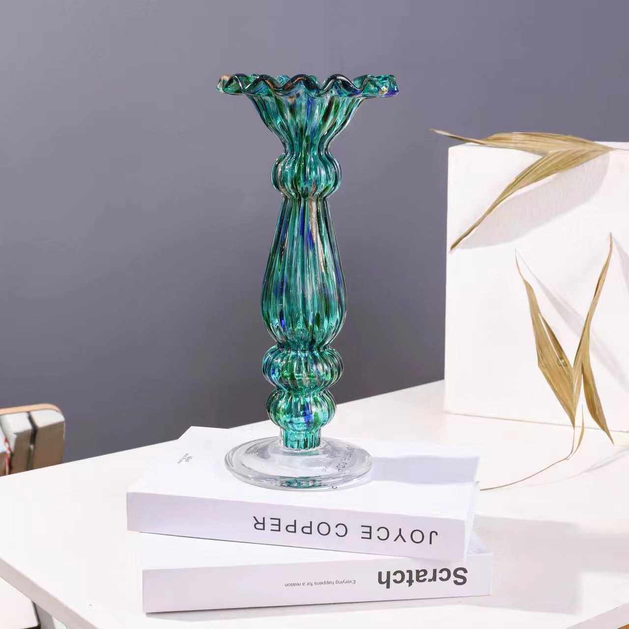 欧式创意玻璃花瓶玻璃烛台客厅餐桌家居插花工艺品摆件