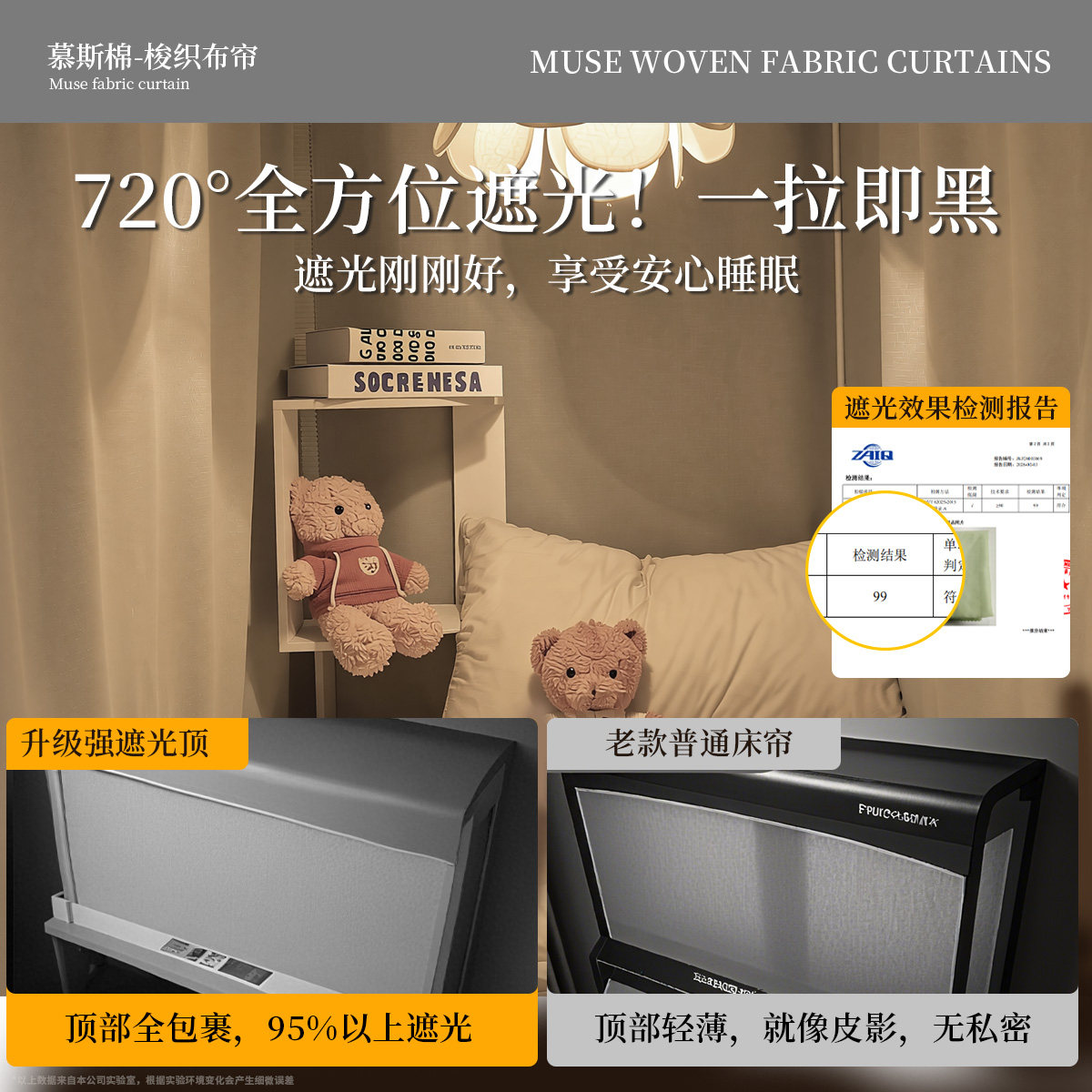 蚊帐床帘一体式学生上下铺全罩式强遮光帘四季上铺折叠梭织支架