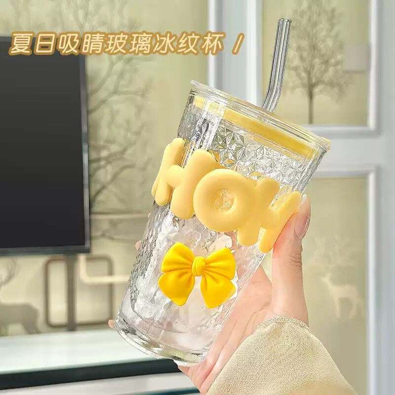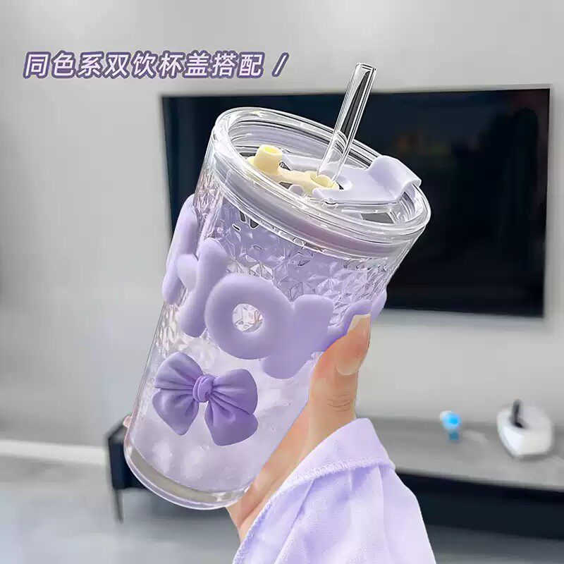 可爱卡通玻璃杯大容量水杯2024新款女杯子办公室家用牛奶杯奶茶杯