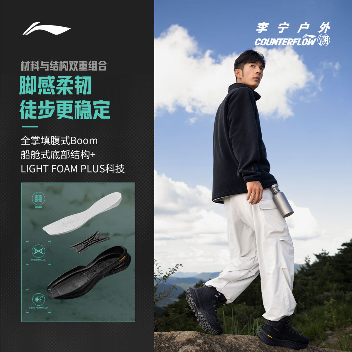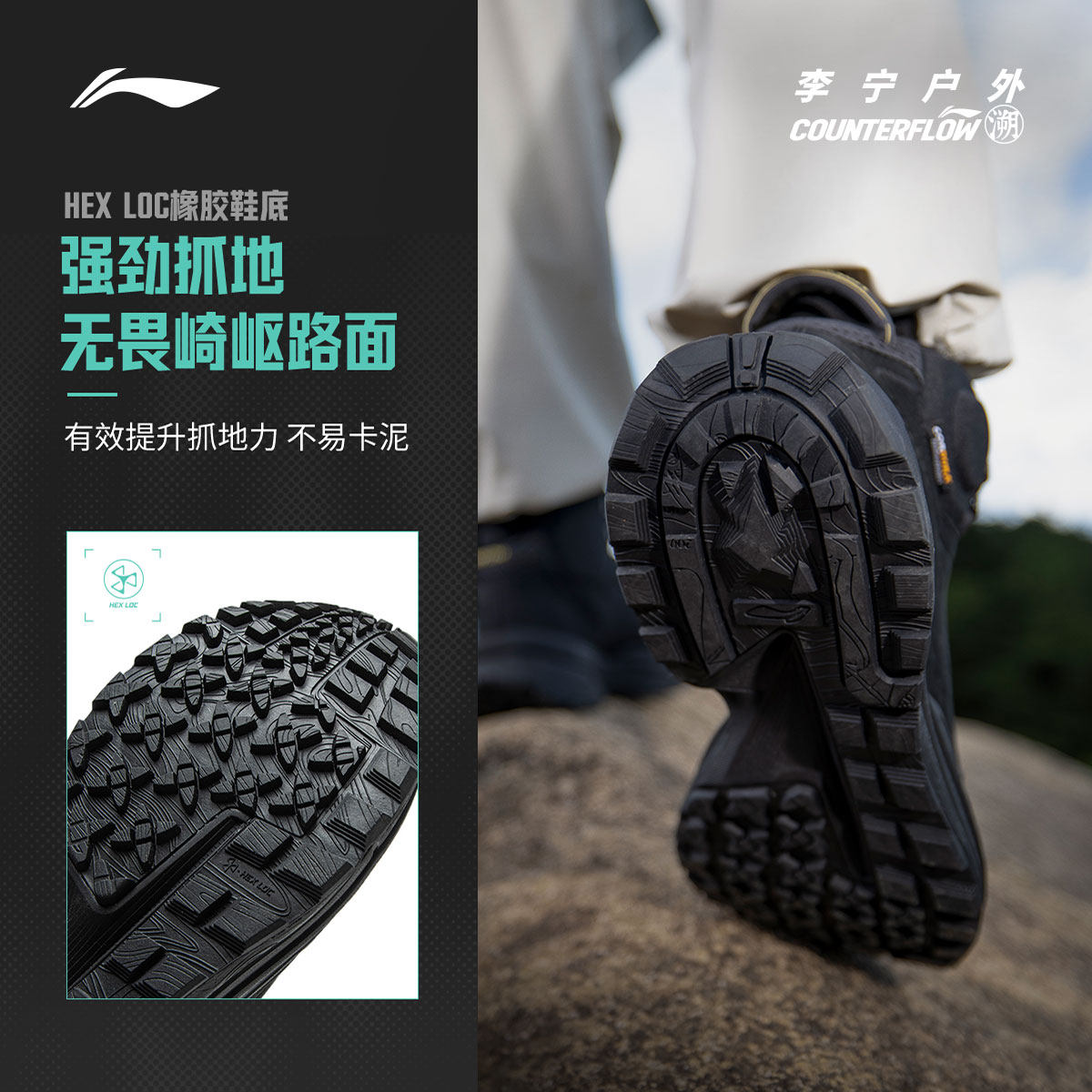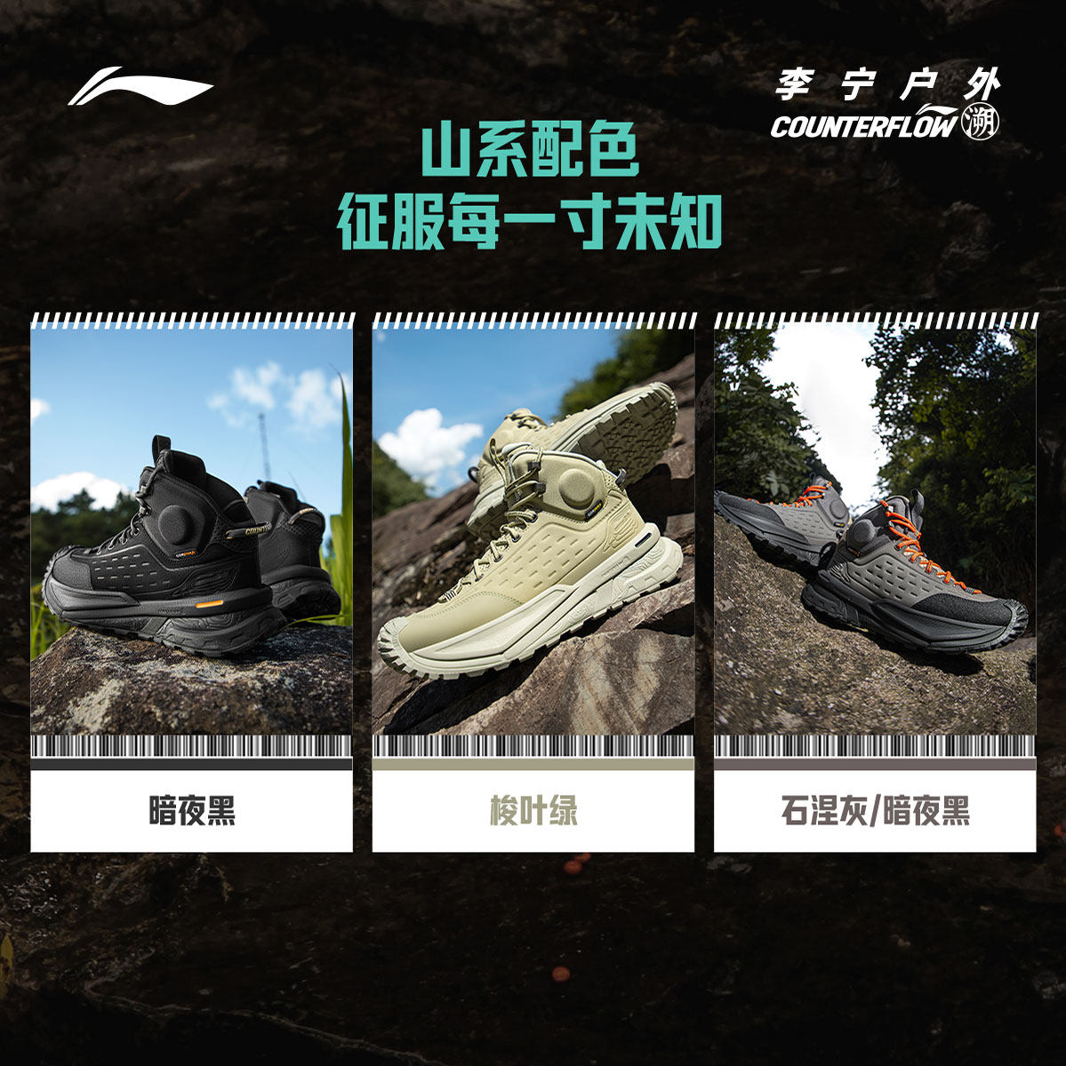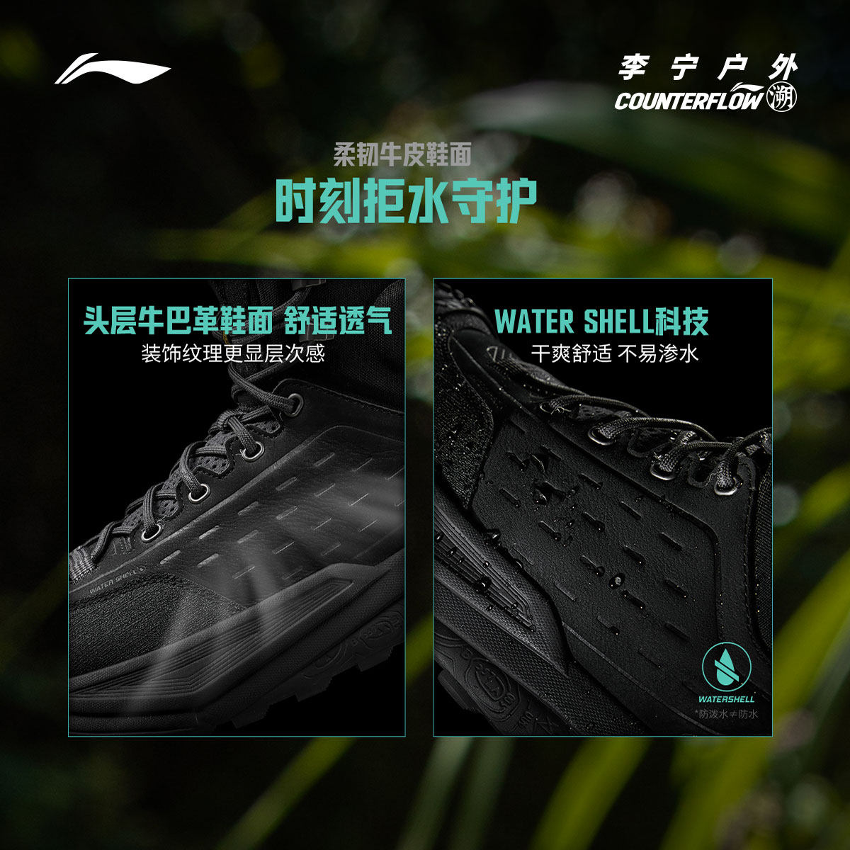 李宁CF溯行川HIGH丨徒步鞋男鞋防泼水户外回弹情侣女鞋高帮运动鞋