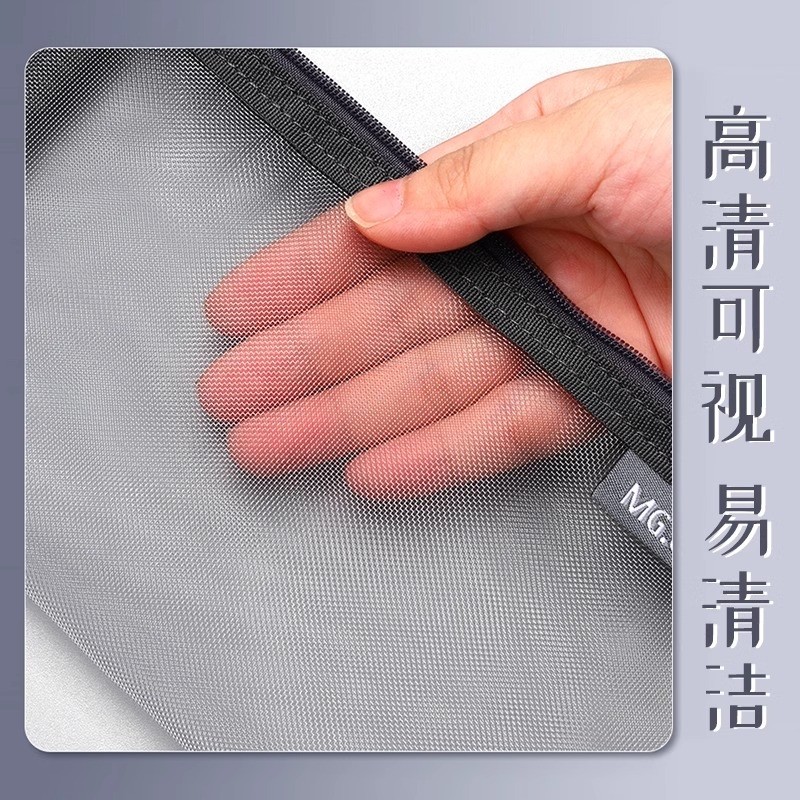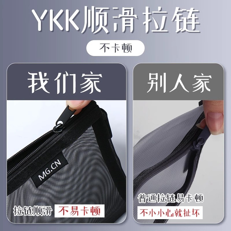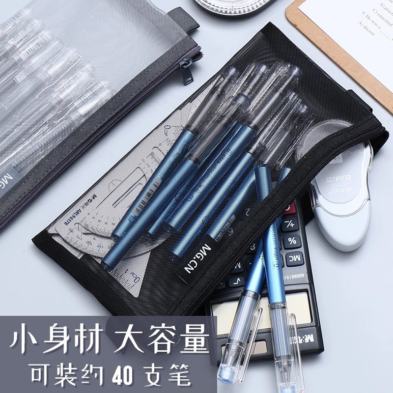 晨光笔袋透明网纱文具袋铅笔盒考试专用男女孩通用高颜值ins铅笔袋小学生初中生简约文具盒收纳袋笔带学生用
