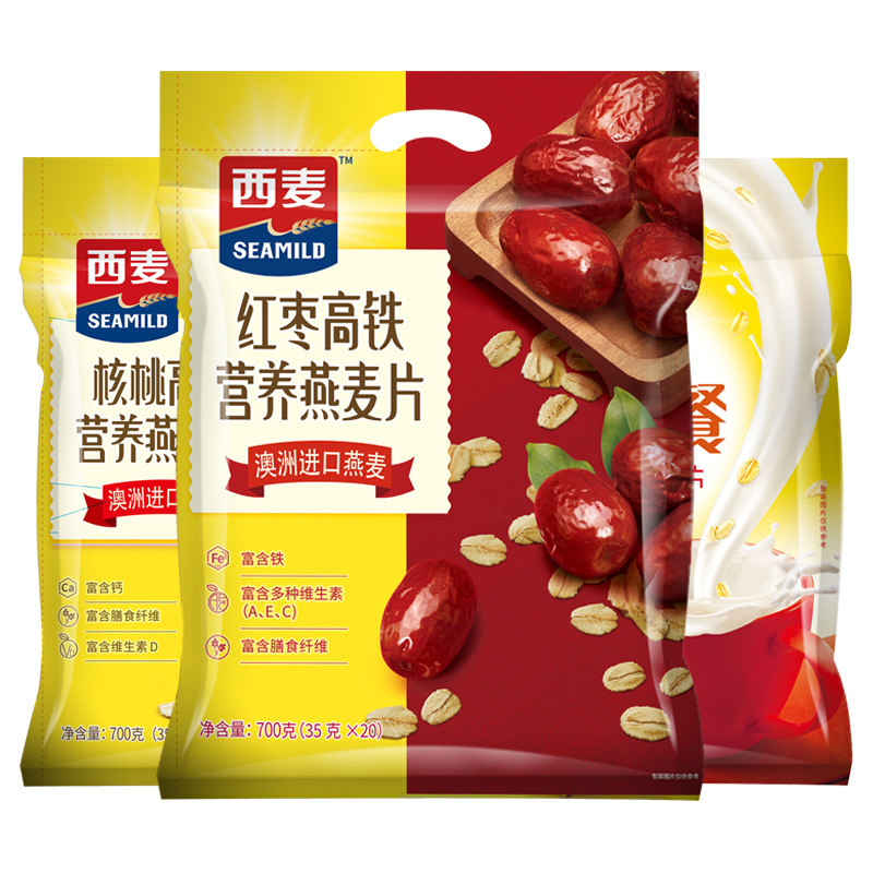 西麦红枣高铁燕麦片700g即食特浓牛奶中老年阳光早餐营养燕麦片
