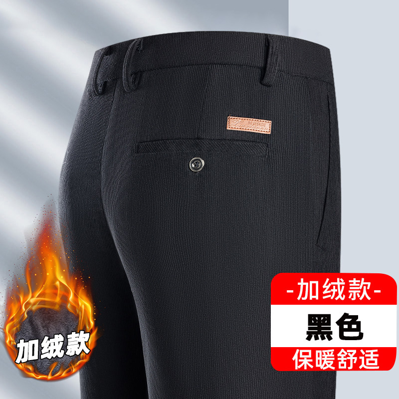 罗蒙加绒加厚男士休闲裤商务休闲秋冬季新款弹力直筒西裤秋冬款