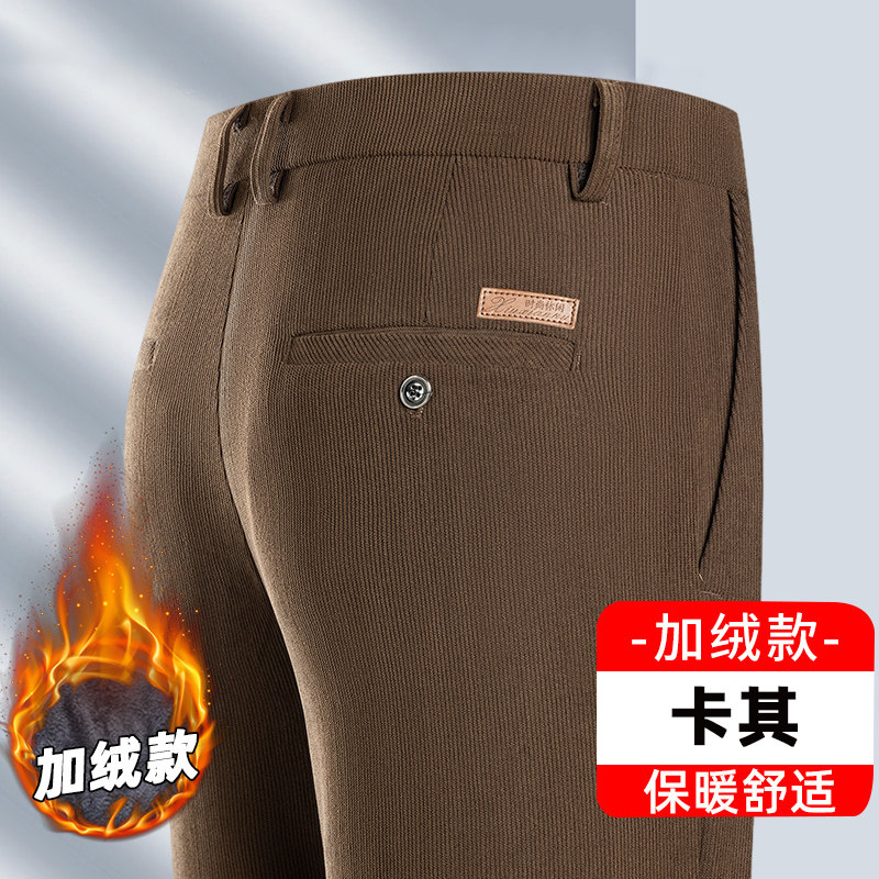 加绒加厚灯芯绒男裤子宽松大码中青年直筒休闲长裤耐穿耐磨弹力裤