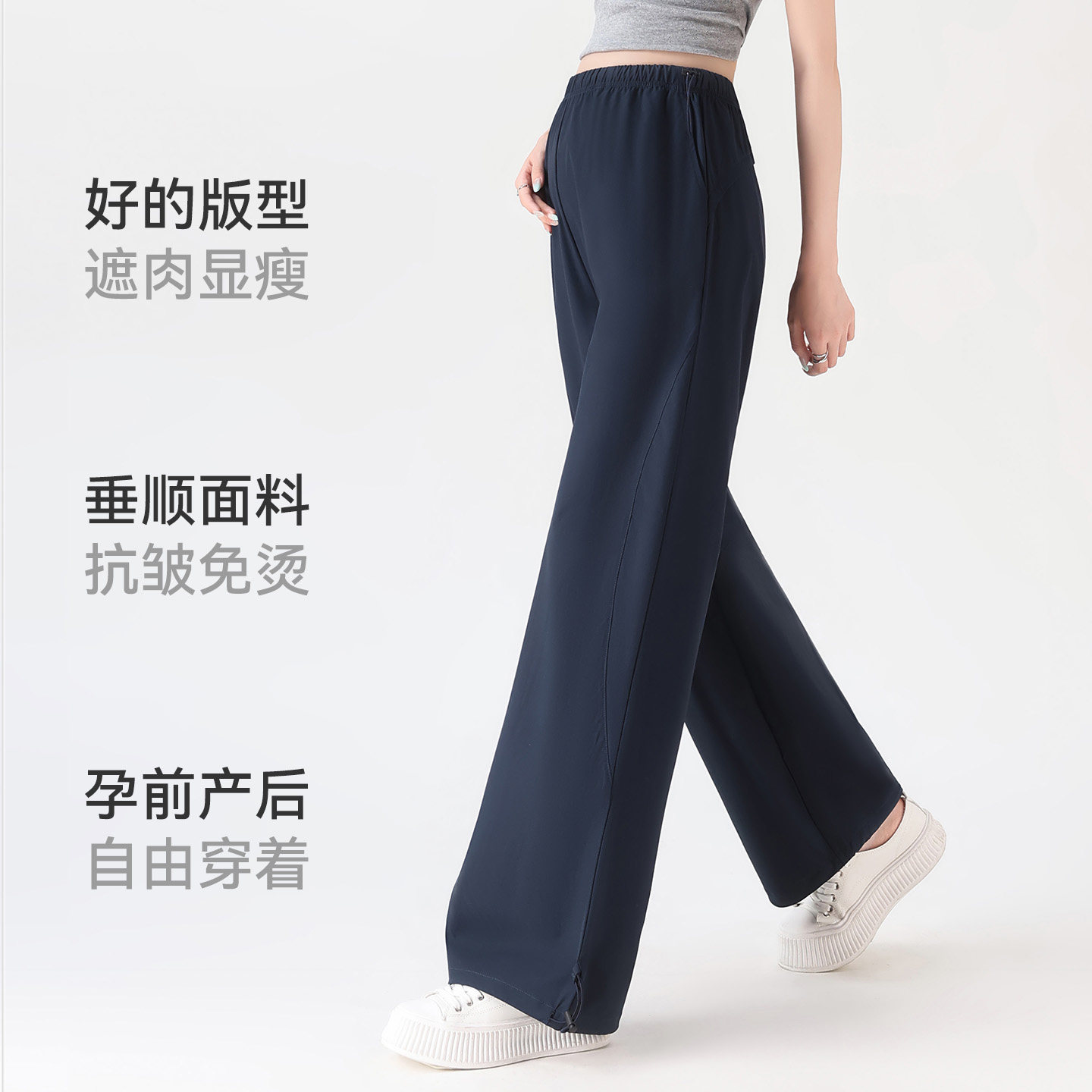 十月结晶孕妇裤冬季小个子垂感阔腿裤松紧腰部妈妈外穿加绒长裤女