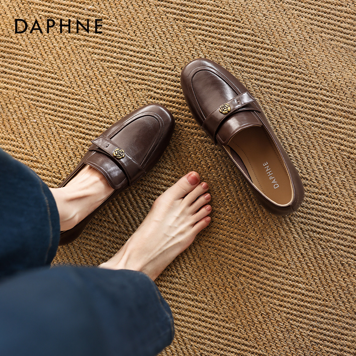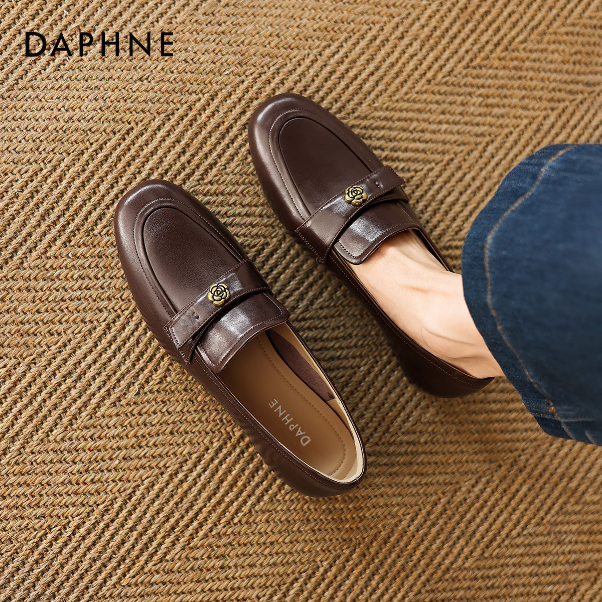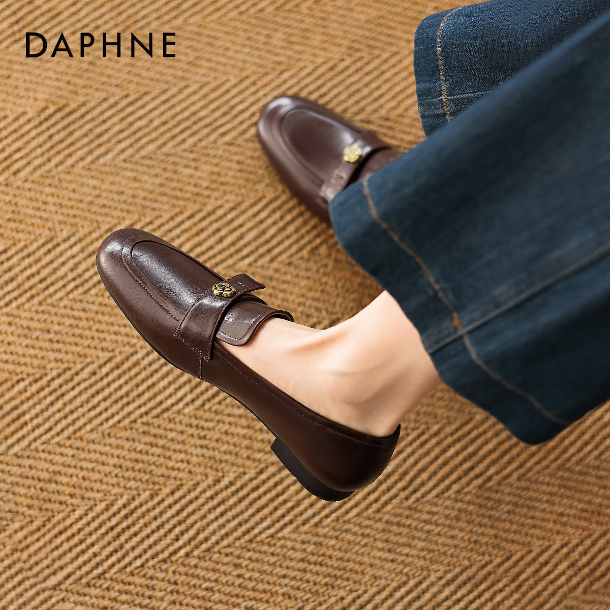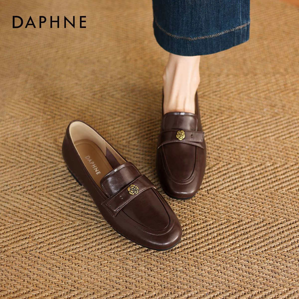 达芙妮超软乐福鞋女2026新款春季通勤小皮鞋低跟一脚蹬豆豆鞋女鞋