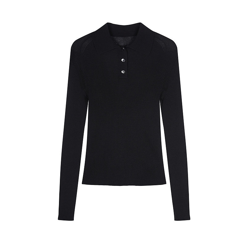 三福长袖上衣2025新款秋季圆领修身针织衫简约纯色内搭打底衫女装