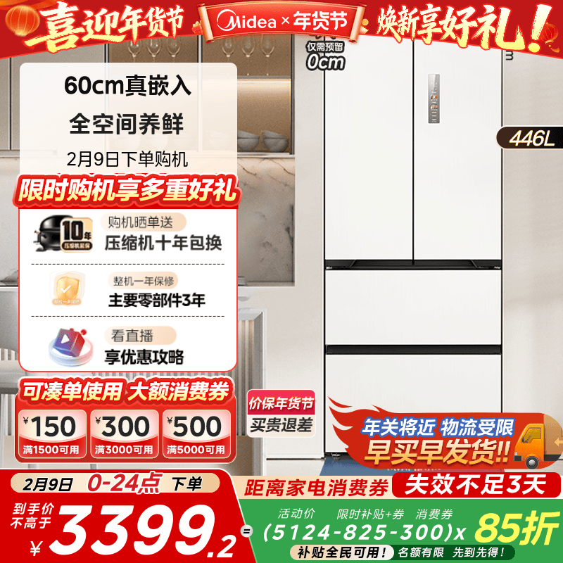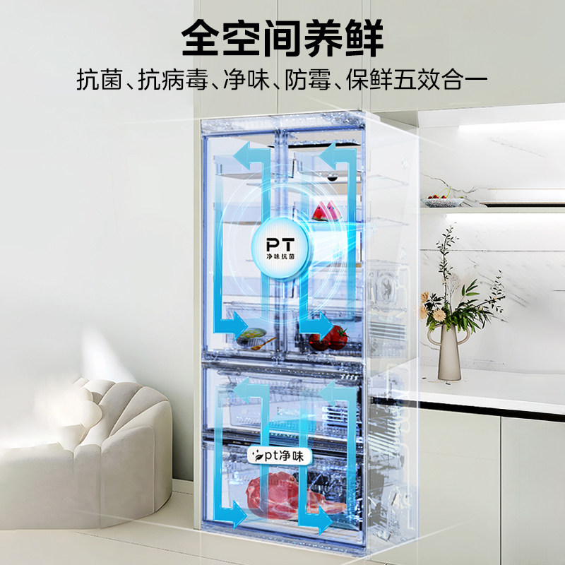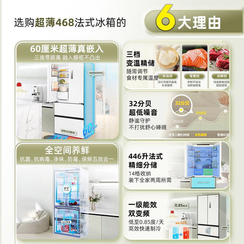 美的超薄468零嵌入式法式多门双开冰箱白色家用风冷无霜一级能效