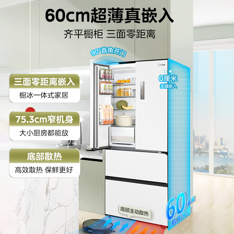 双系统|美的M60小机皇520超薄零嵌入式冰箱家用法式多门四门双开