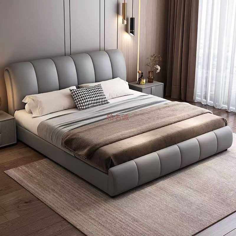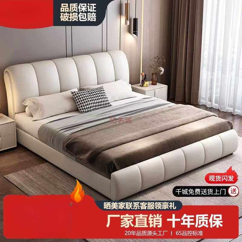 轻奢真皮床主卧1.8米双人床现代简约1.5米可储物皮艺床全新款婚床