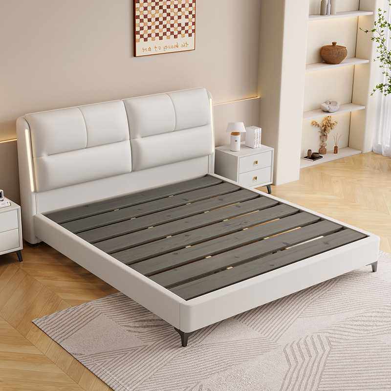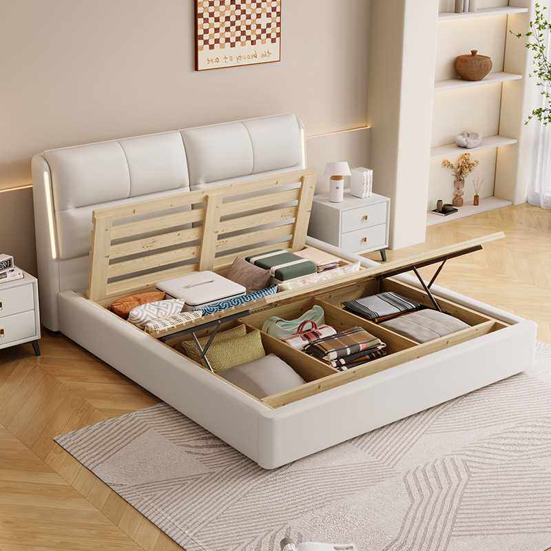 真皮床简约奶油风轻奢主卧1.8m双人床1.5m储物皮艺床婚床高箱储物
