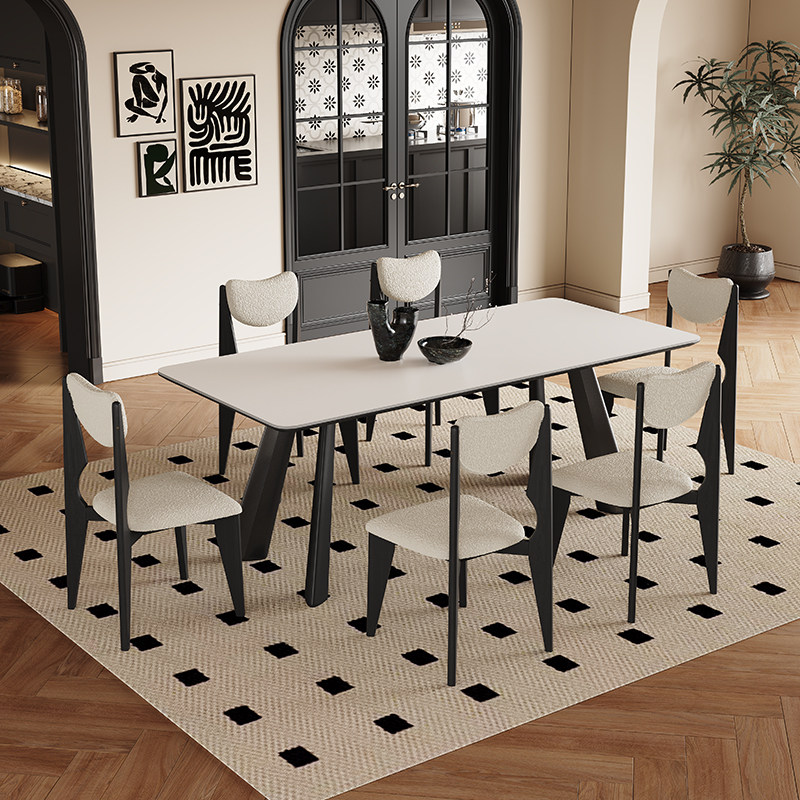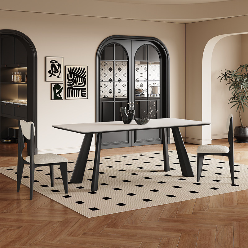 长方形岩板餐桌哑光白色高端23新款家用法式复古餐桌轻奢现代简约