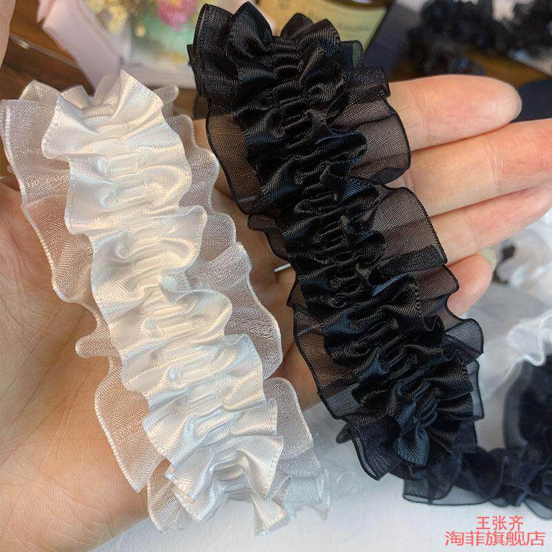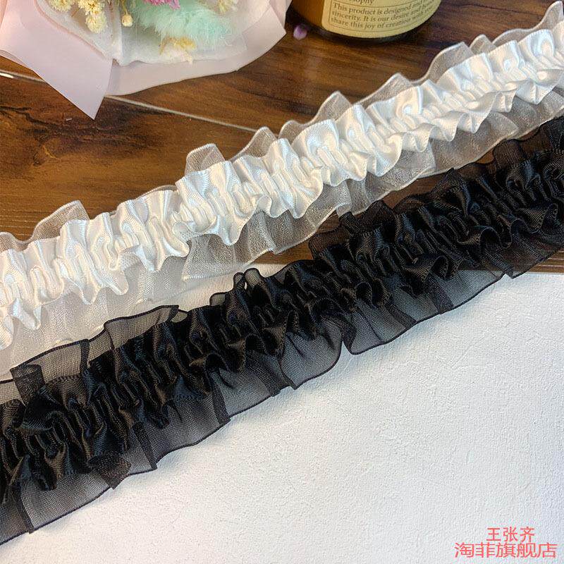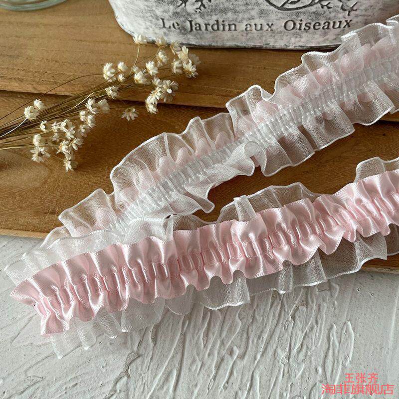 百褶珠光缎花边手工木耳辅褶皱松紧带布料diy粉色装饰条