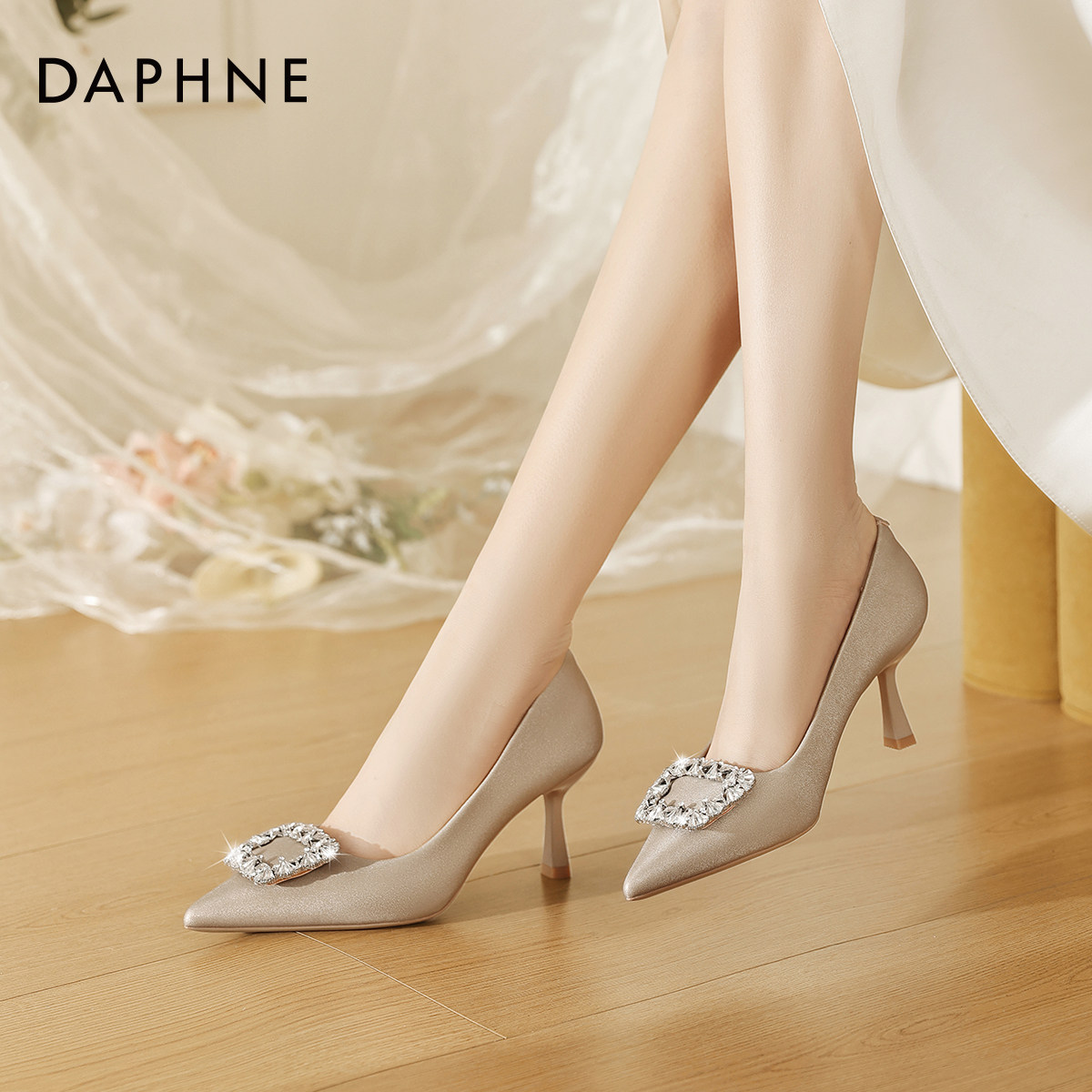 达芙妮黑色高跟鞋女2026新款通勤工作鞋法式气质小皮鞋尖头单鞋女