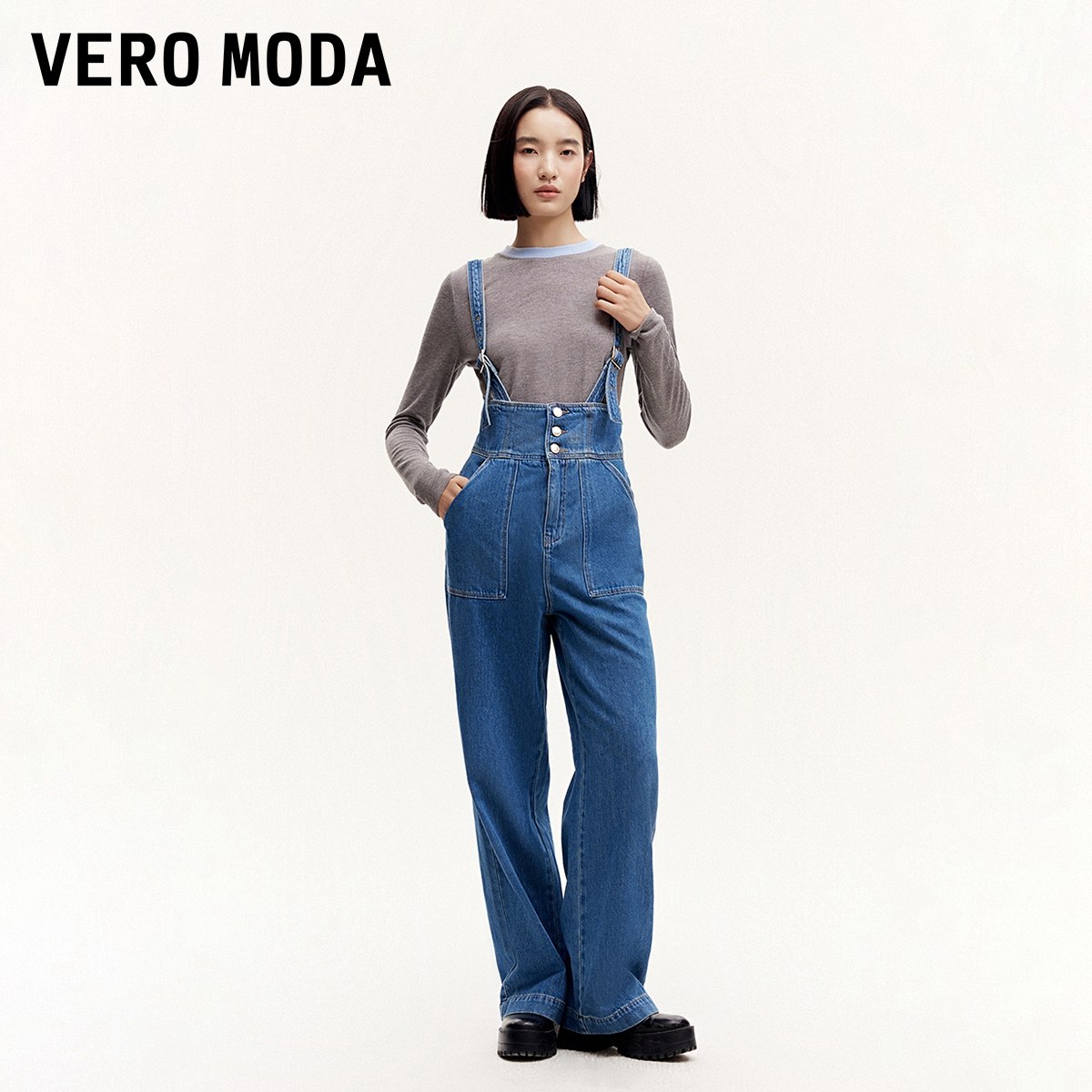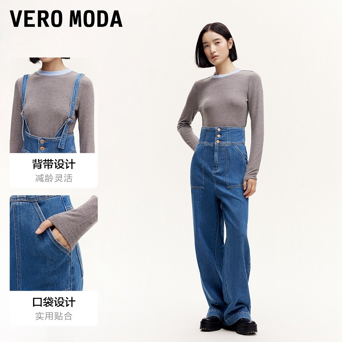 Vero Moda奥莱牛仔背带裤女秋冬新款纯棉休闲百搭减龄阔腿裤流行