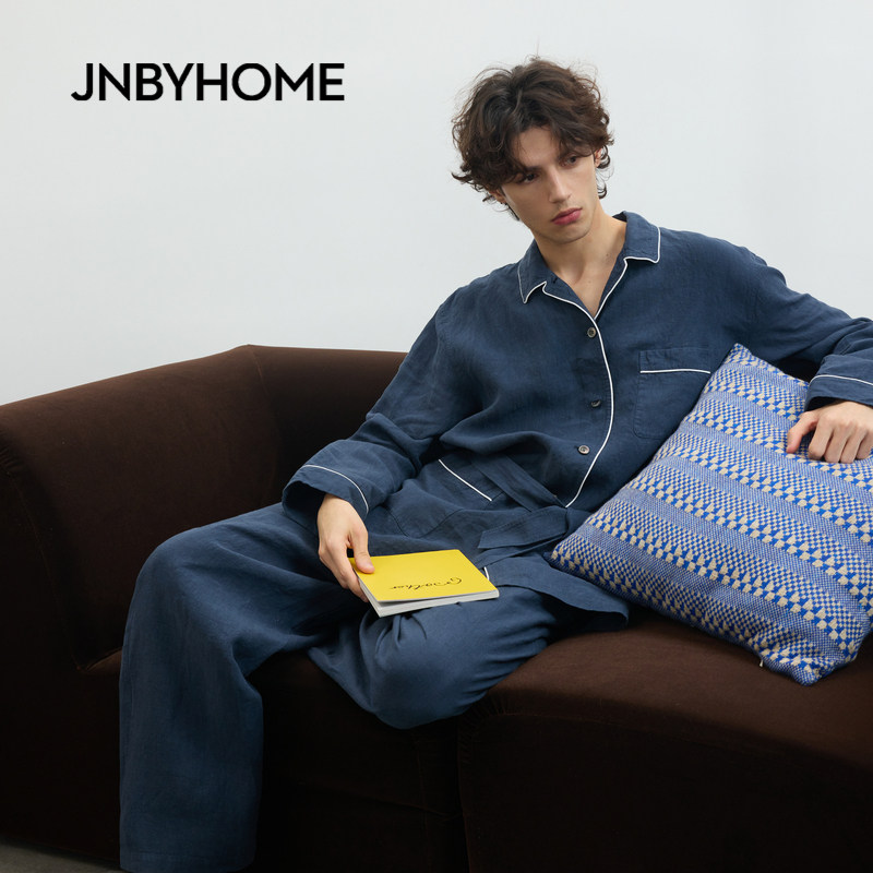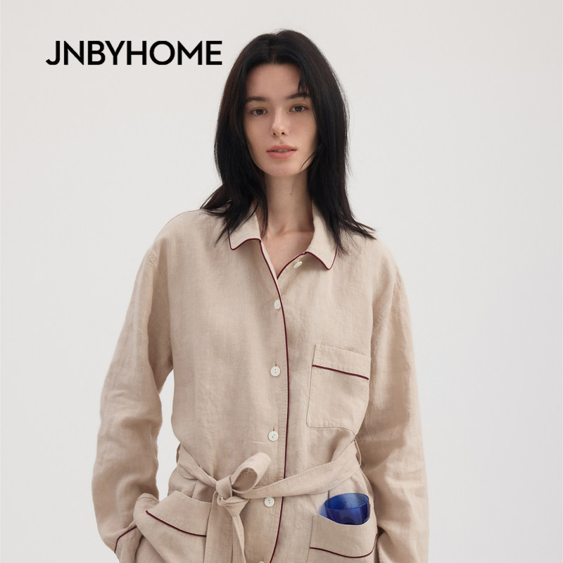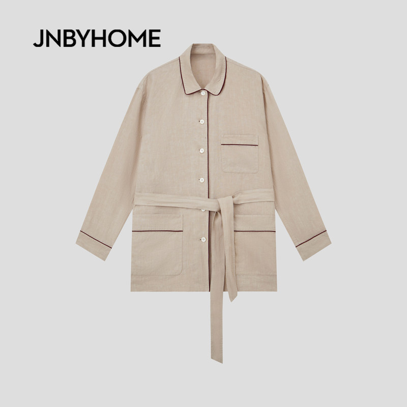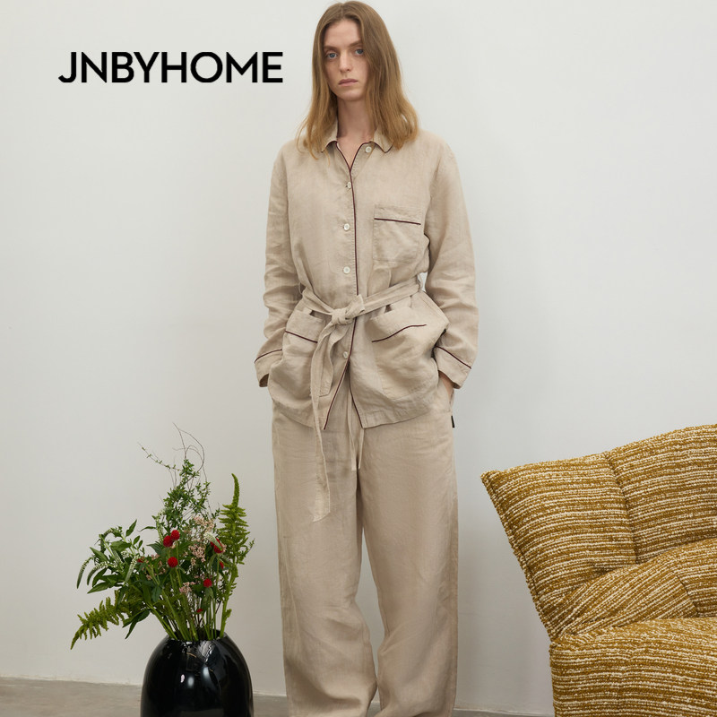 JNBYHOME江南布衣26新品春夏长袖家居衬衫套装亚麻休闲风睡衣情侣