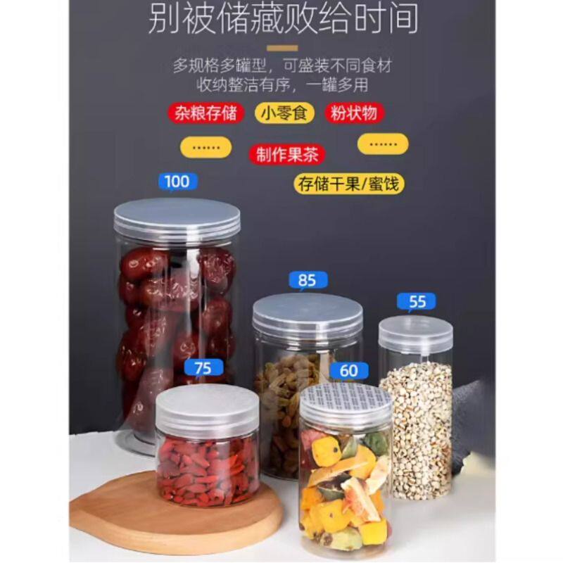 全新级塑料空瓶子透明pet密封罐子五谷杂粮收纳盒糖果广口储物罐