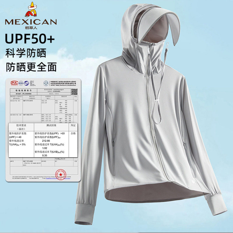 稻草人upf50+冰丝大帽檐皮肤衣女款夏季防紫外线透气轻薄防晒服男