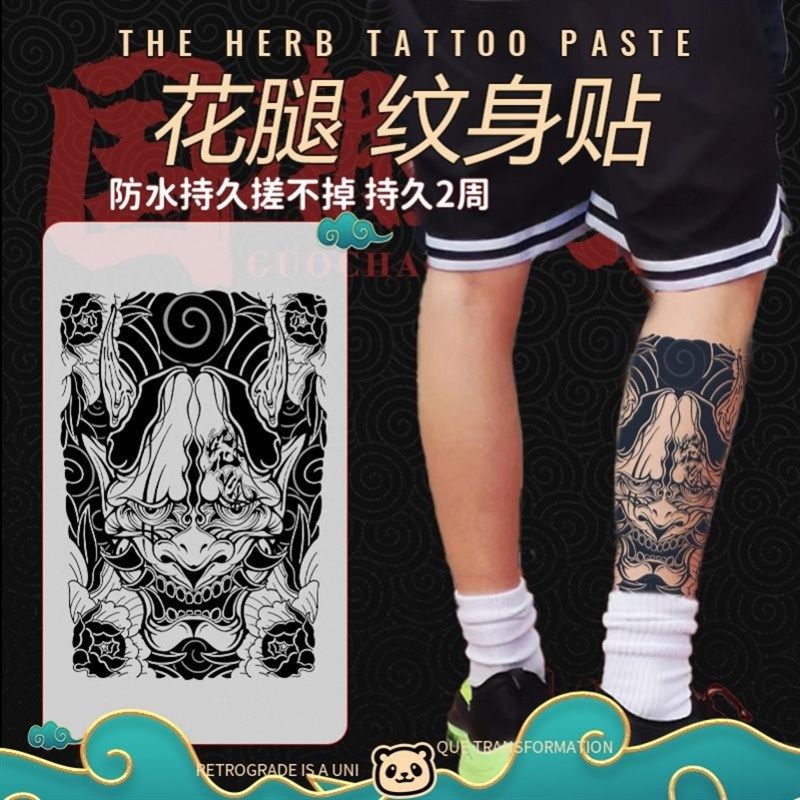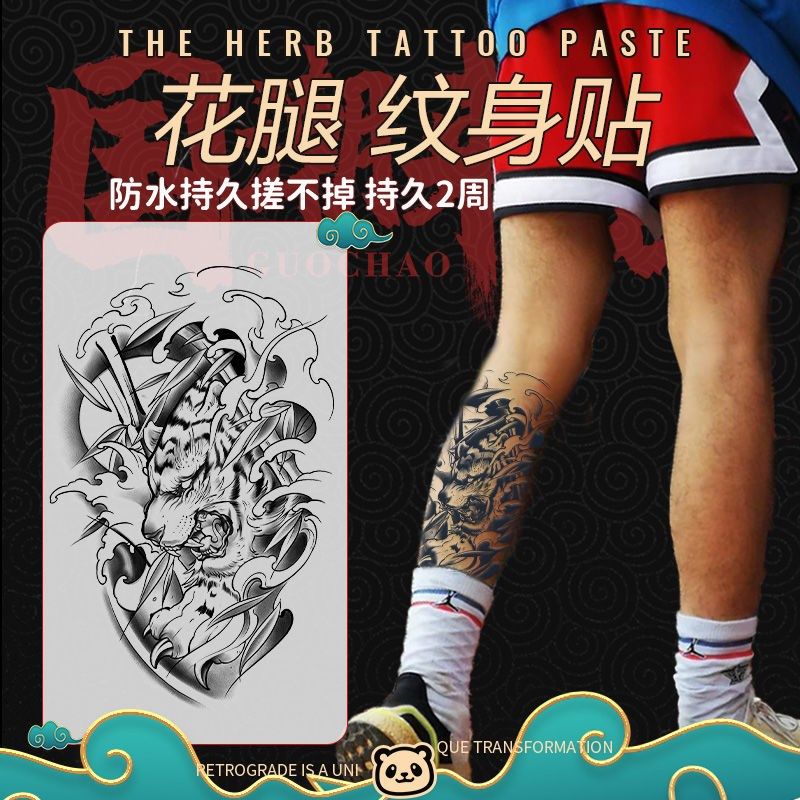 速发小腿贴草本果汁小腿刺光男防花水腿贴纸不反青文身贴