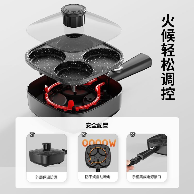 煎蛋神器蛋锅三合一鸡蛋汉堡锅早餐牛排煎锅插电不粘锅平底锅饼锅