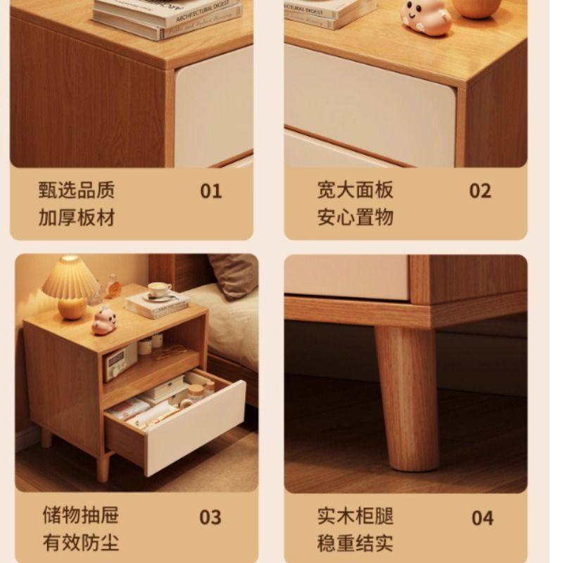 实木床头柜小型家用卧室简易收纳柜用床边柜置物架储物柜子橡木