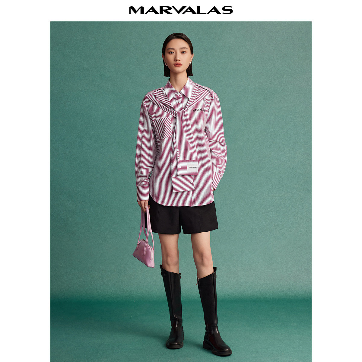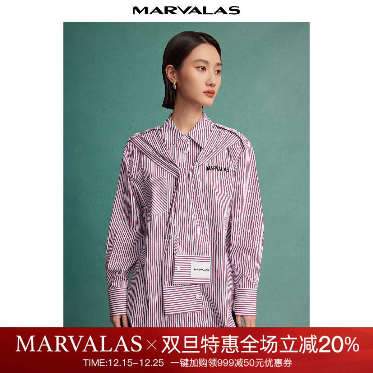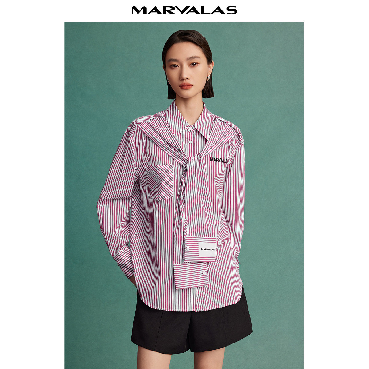 100棉|罗蒙春秋女士长袖衬衫竖条纹休闲百搭宽松衬衣女上衣外套