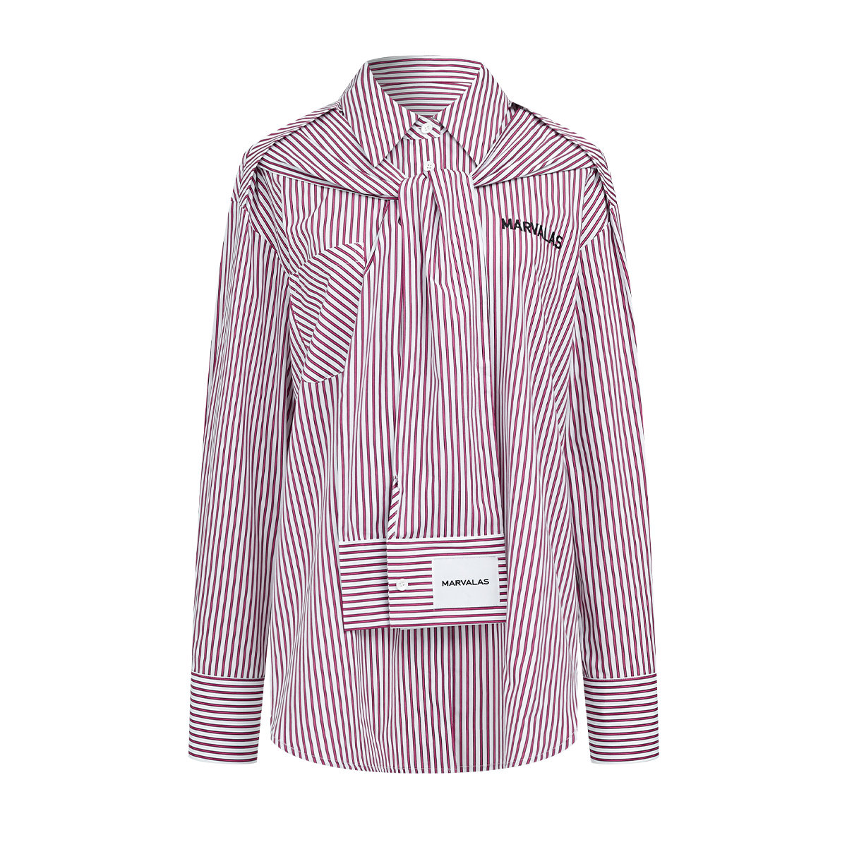 曼德诗条纹衬衫2025秋季新款假两件设计chic上衣长袖秋季穿搭衬衣