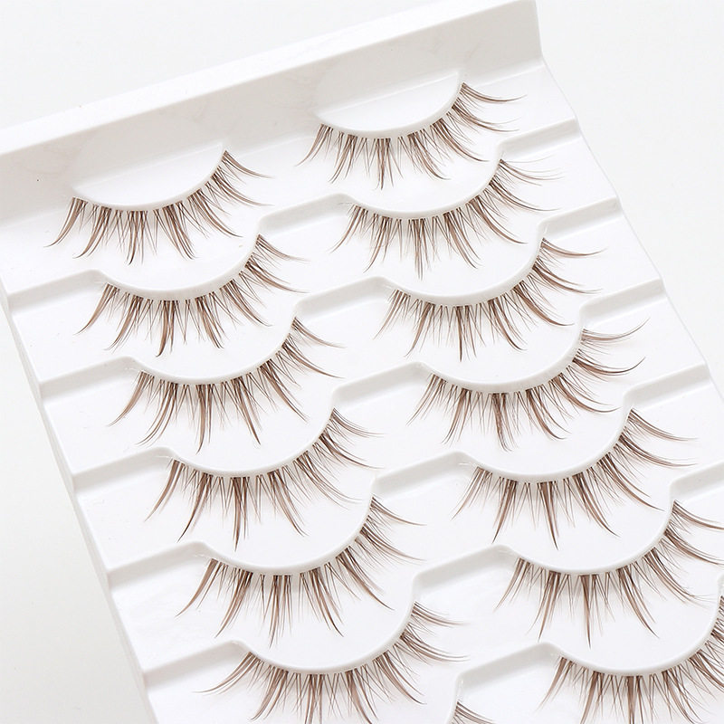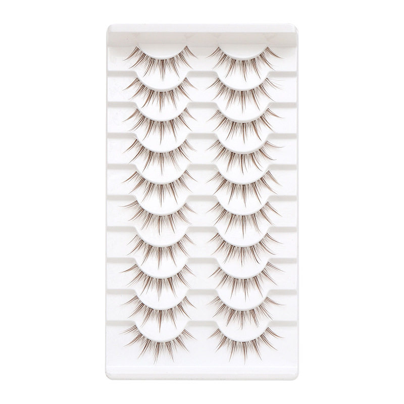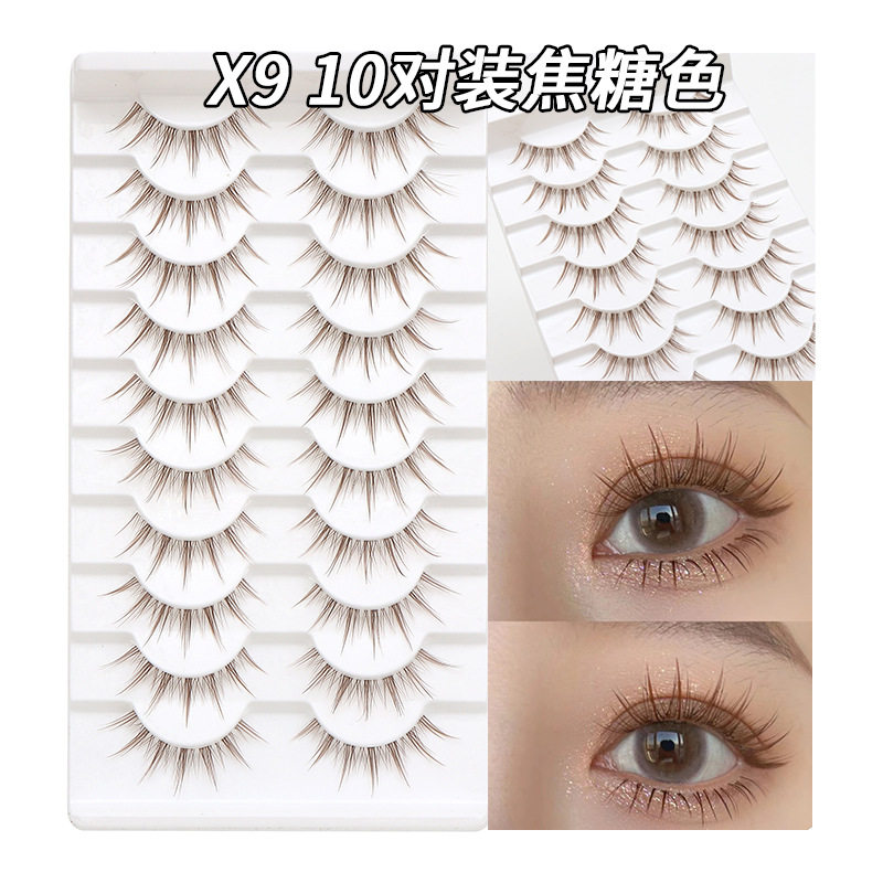 X9 十对装焦糖色自然空气感仙子毛眼睫毛卷翘透明梗一片式假睫毛
