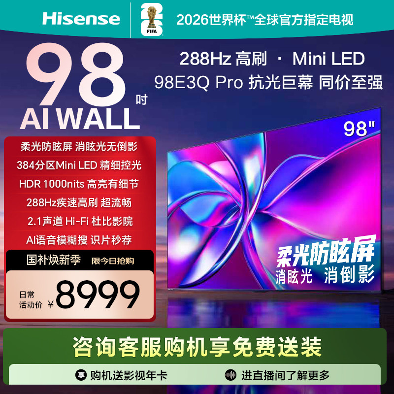 海信电视E3Q Pro 98英寸 高刷Miniled 以旧换新 世俱杯官方电视机