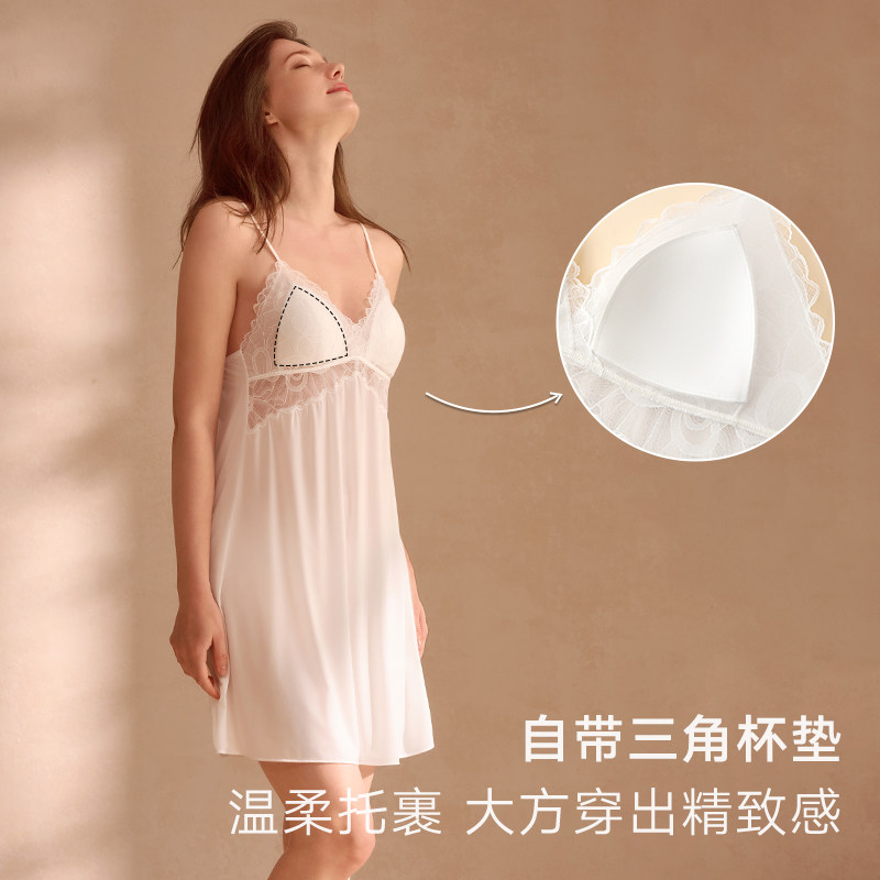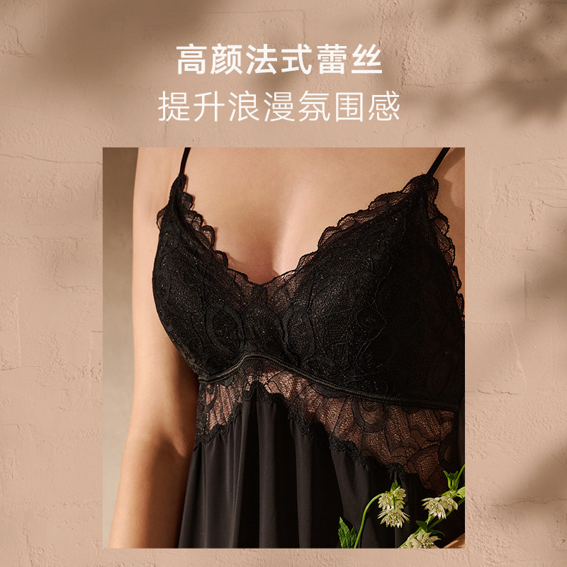 晚风|曼妮芬细肩带带杯垫性感蕾丝女家居裙舒适吊带度假睡裙起居