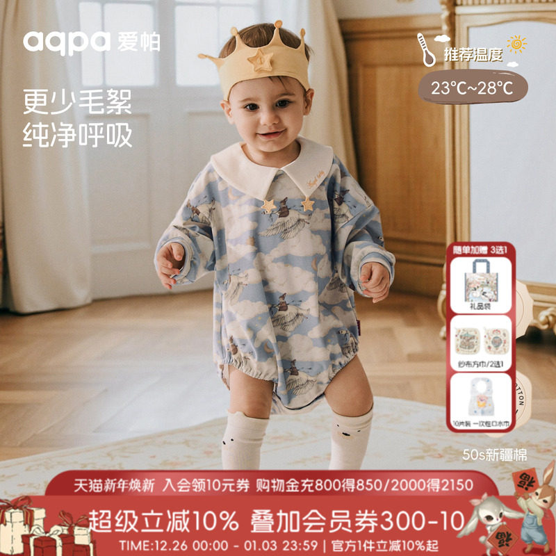 [云端之旅]aqpa爱帕婴儿长袖包屁衣秋冬纯棉新款宝宝衣服连体衣萌