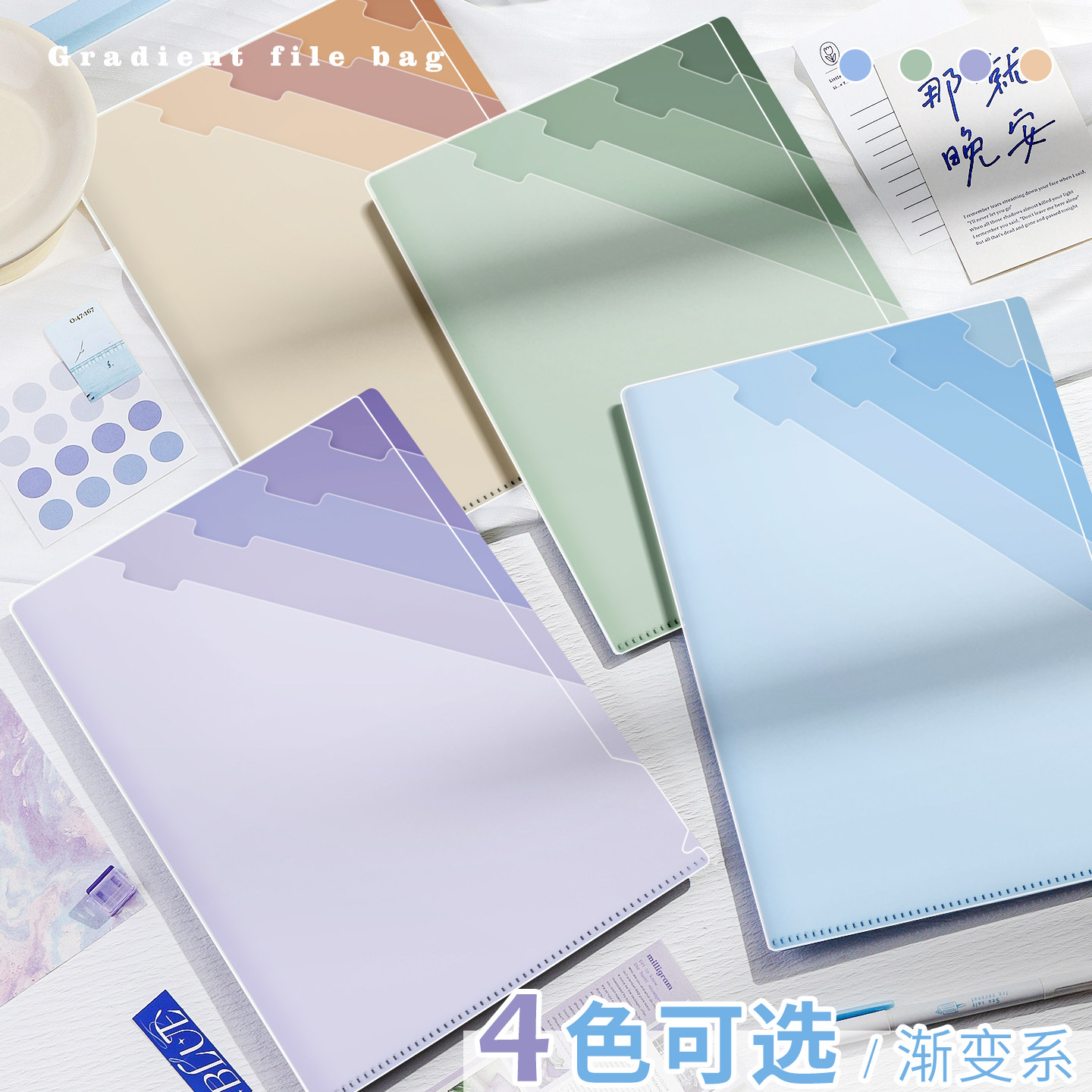 渐变多层文件夹A4科目分类试卷夹收纳袋学生专用透明l型文件套6层分类单片文件袋多功能索引资料册办公用品