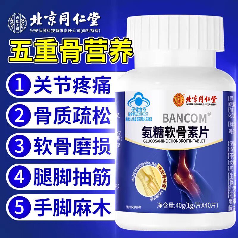 北京同仁堂氨糖软骨素钙片中老年护关节疼痛补硫酸安糖官方旗舰店