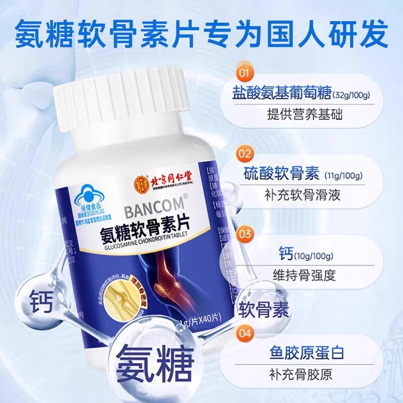 北京同仁堂氨糖软骨素钙片中老年人疼痛正品葡萄糖补钙骨质疏松