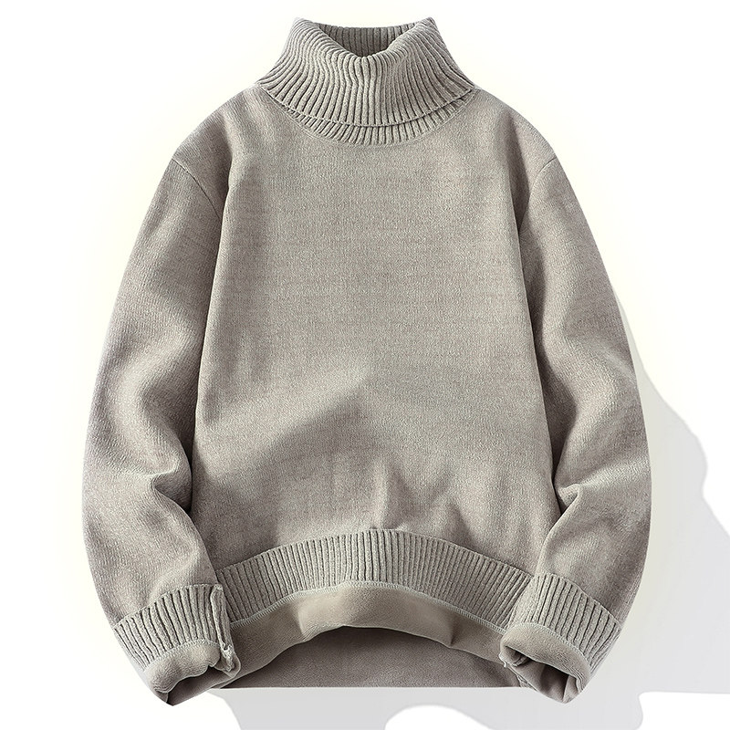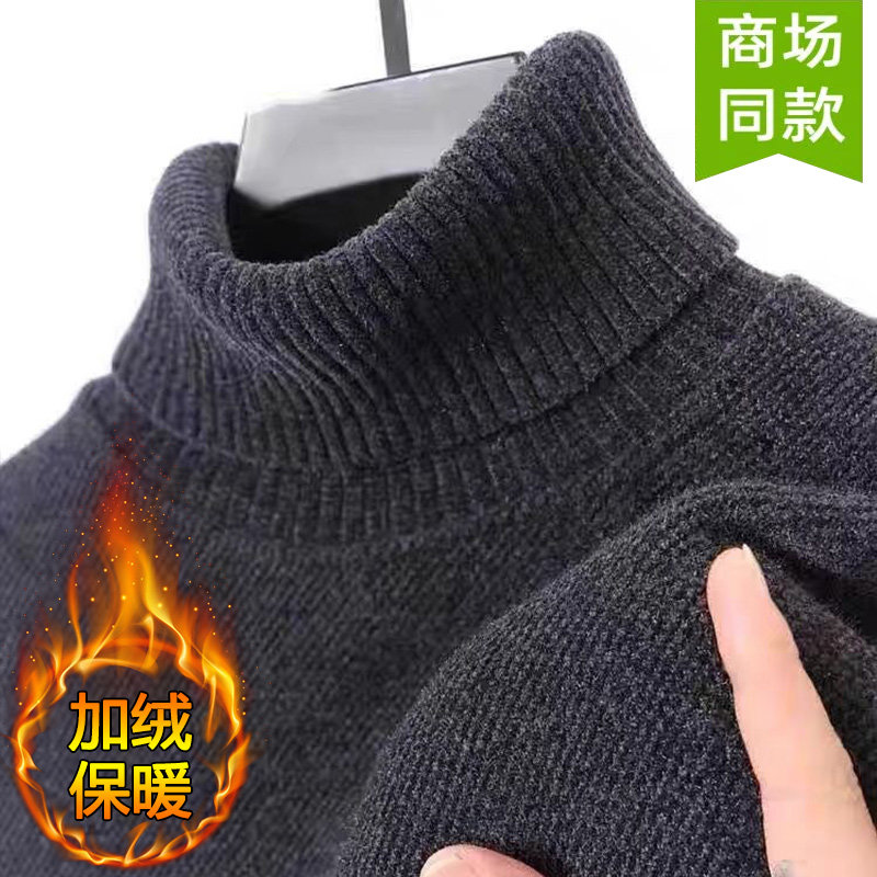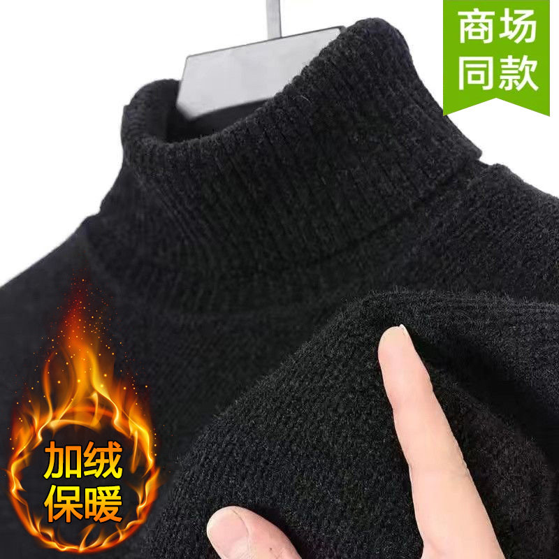雪尼尔一体绒加绒加厚男士毛衣新款爸爸装高领冬季保暖针织打底衫