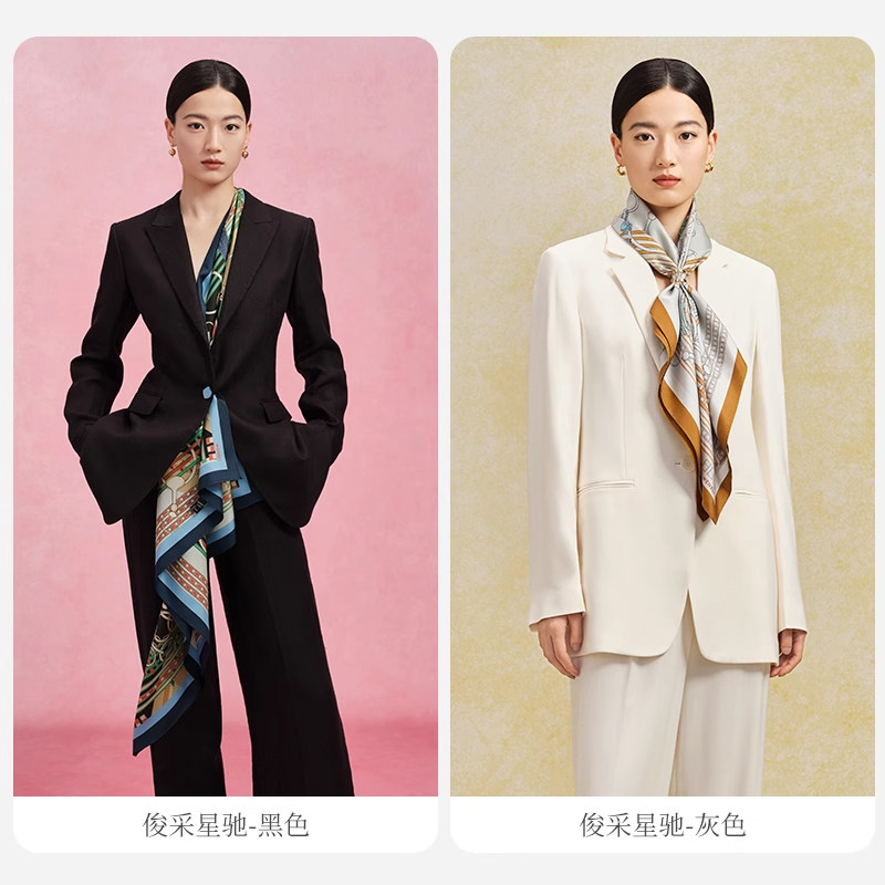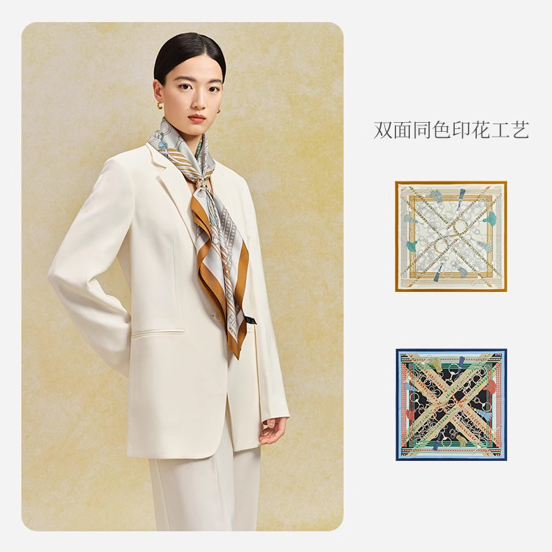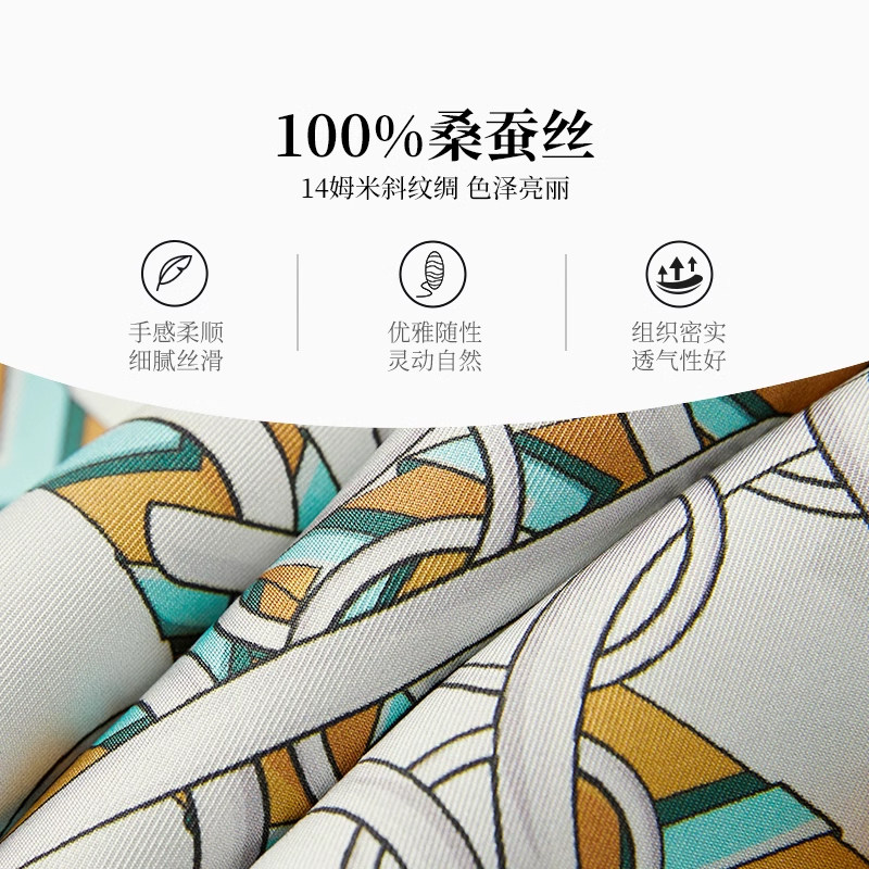 万事利新款欧式100%桑蚕丝丝巾链条百搭双面印花大方巾-俊采星驰