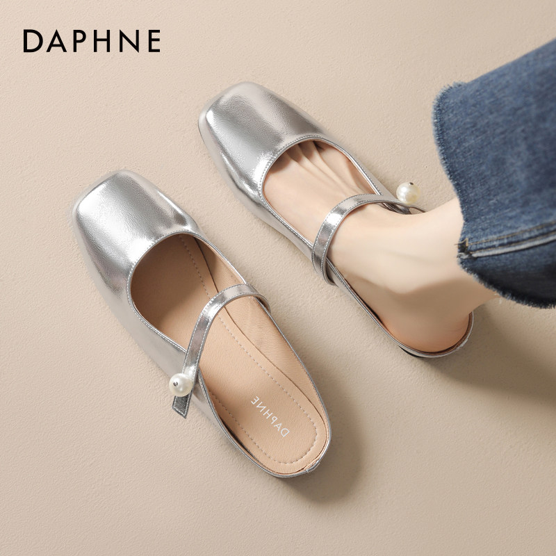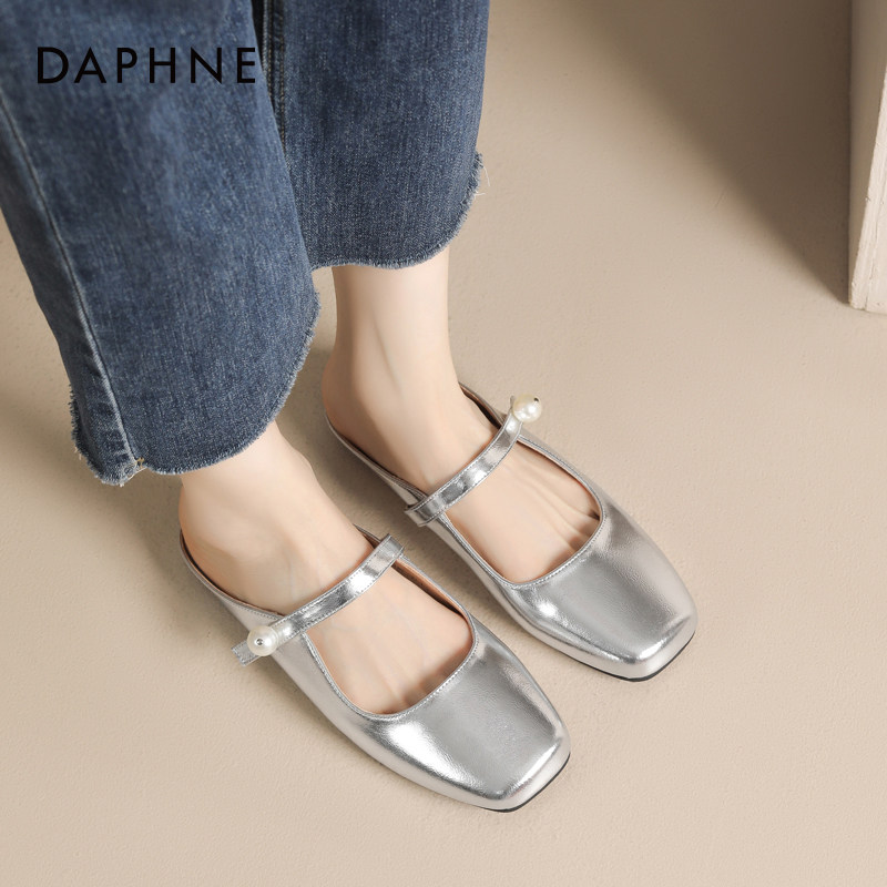 达芙妮银色玛丽珍包头半拖鞋女夏季平底凉拖2025新款女鞋外穿鞋拖