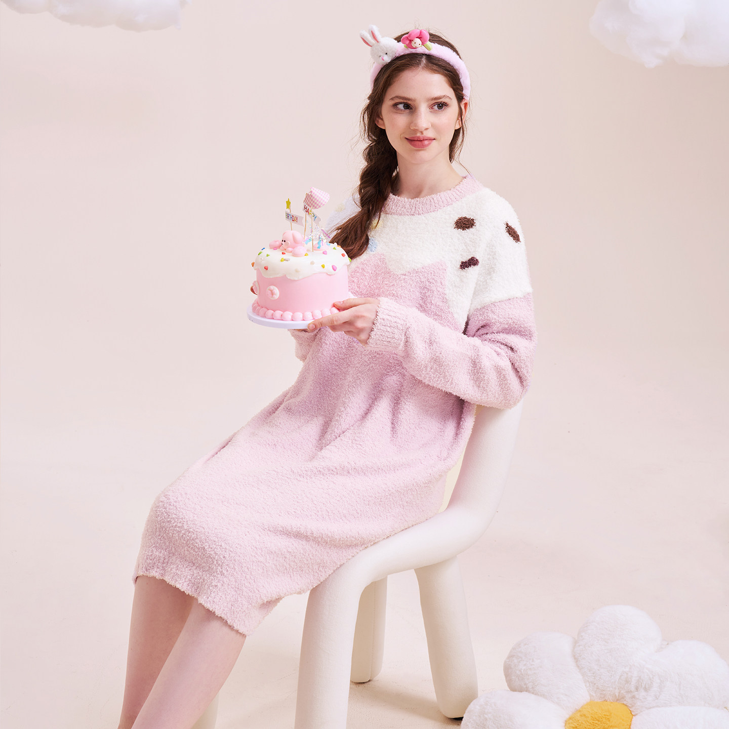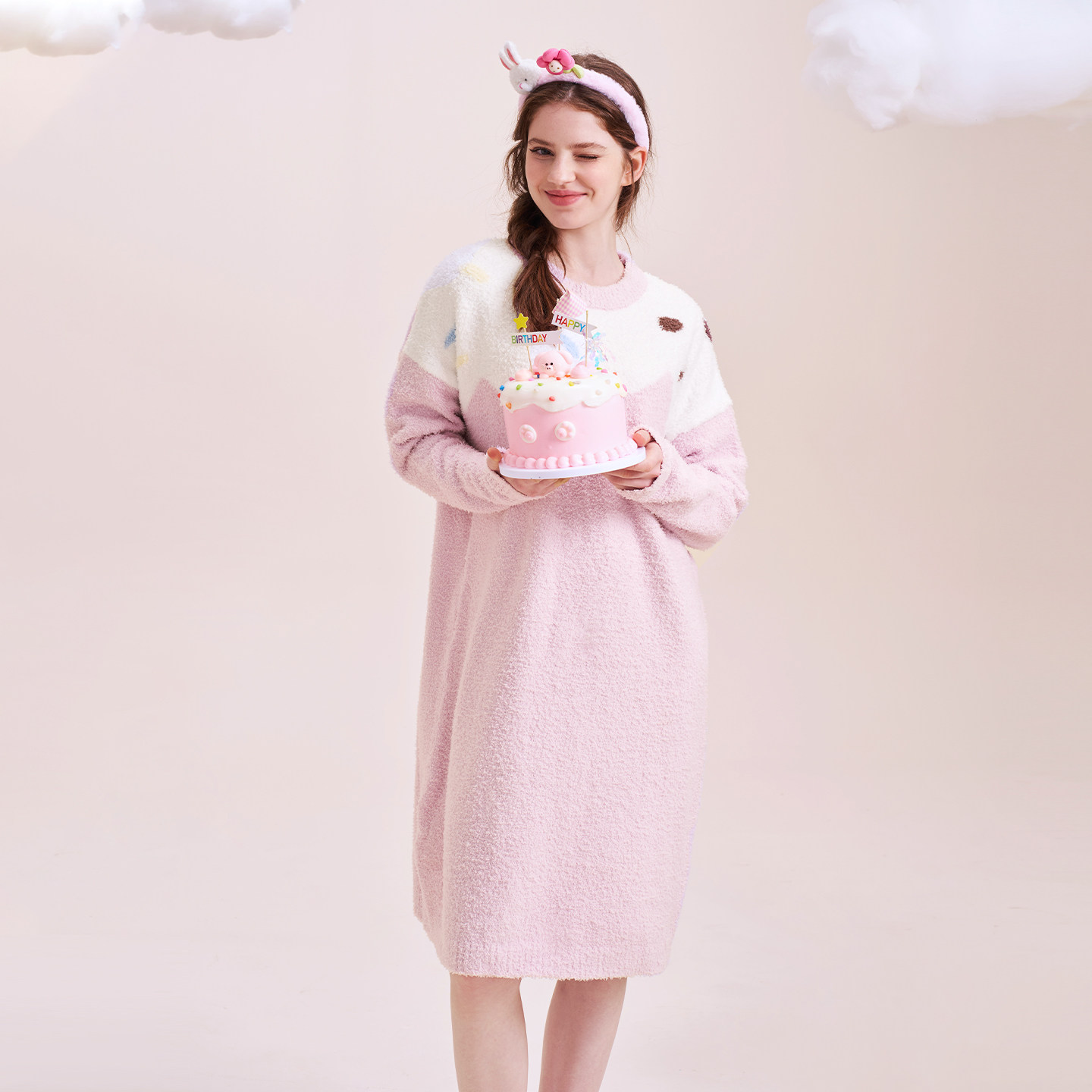 ubras贴贴系列|奶酪绒睡裙长袖睡衣抗菌女款衬衫裙子印花秋冬款