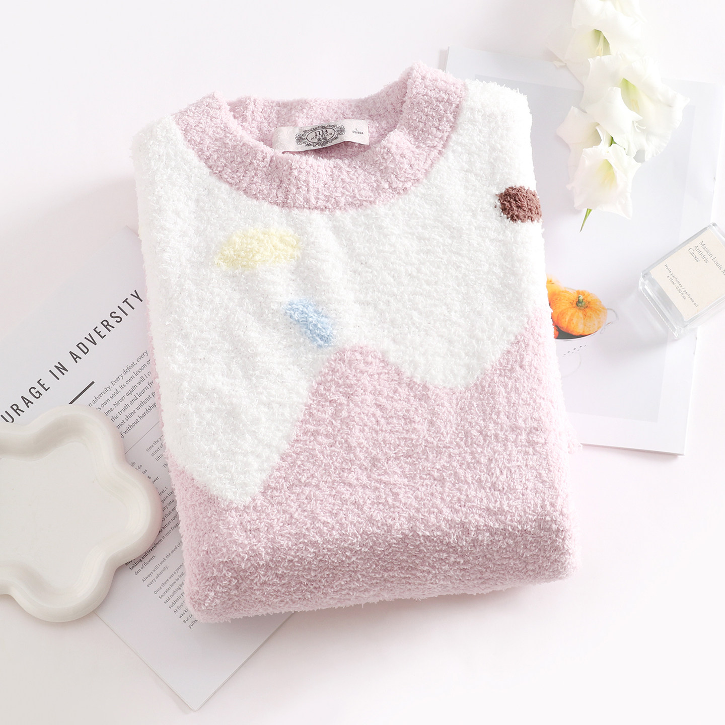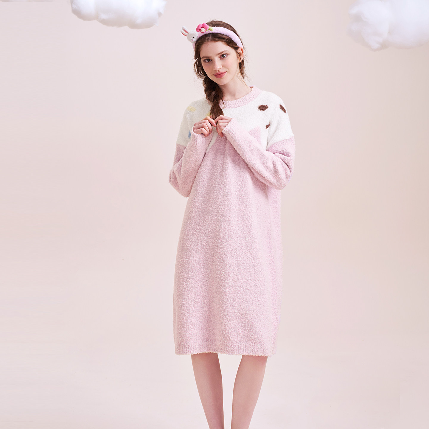 美标秋冬季半边绒睡裙女加厚雪尼尔睡衣卡通保暖甜美可外穿家居服