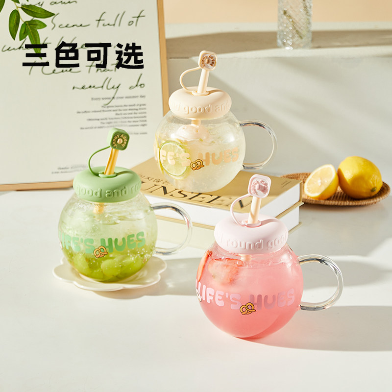 卡罗特玻璃杯带吸管大容量女生高颜值新款水杯办公泡茶桌面杯杯子