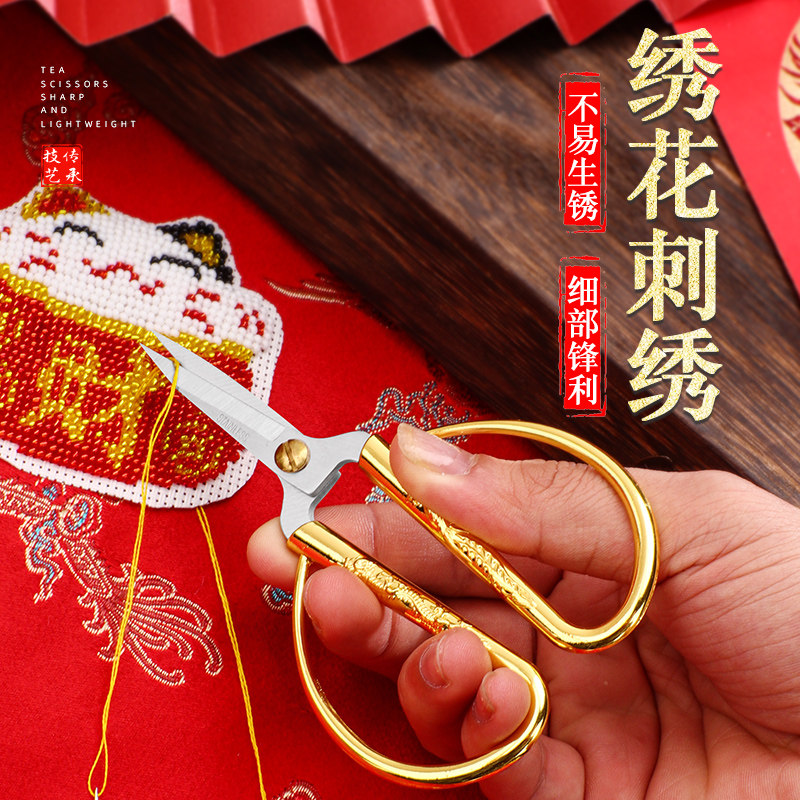 家用不锈钢龙凤剪子锋利手工剪纸剪线头十字绣专用尖头小剪刀剪彩