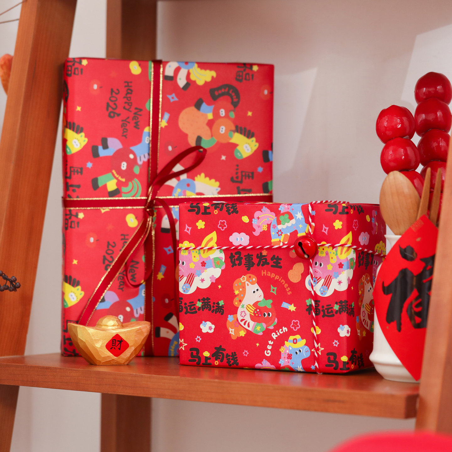 新年礼物包装纸高级感马年春节新春礼盒包装材料礼品纸大尺寸儿童元旦年会包糖果的纸红色国风复古打包纸大张