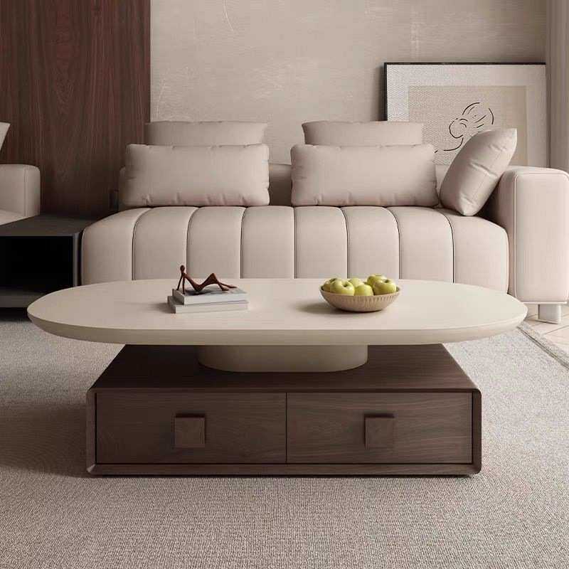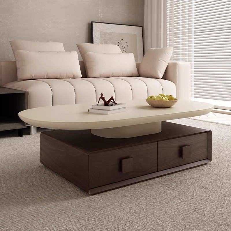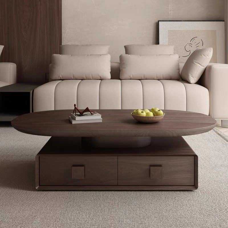 中古风洞石实木茶几2025款客厅家用简约胡桃木轻奢创意微晶石茶几